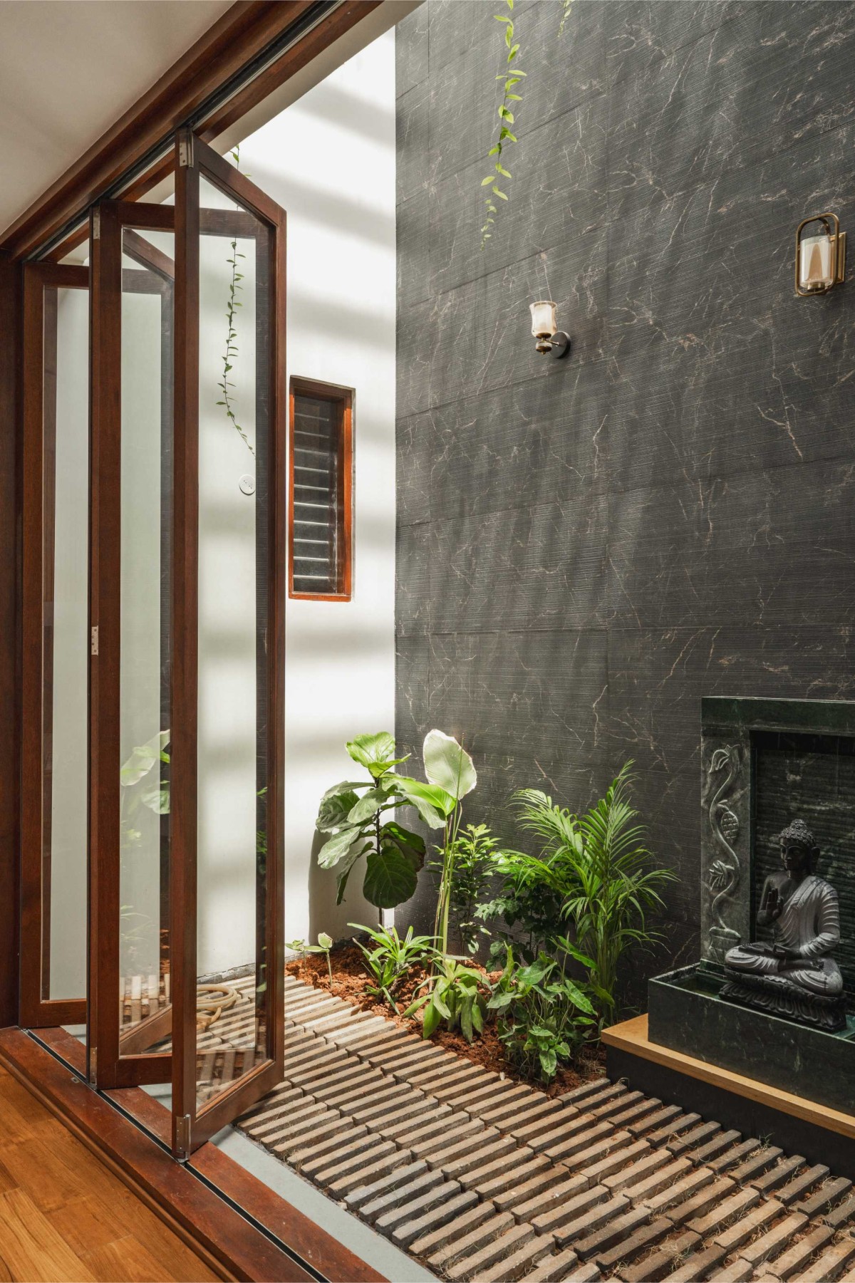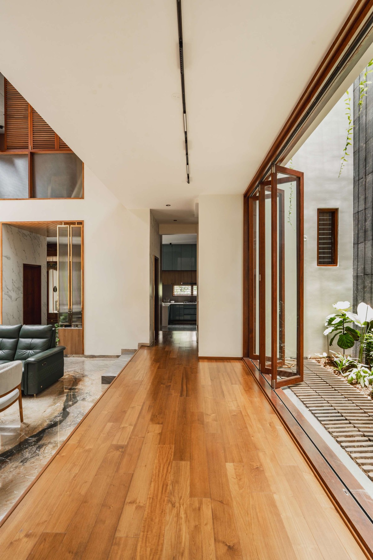 Passage that connects family living & courtyard of Isha_Srinidhi Nilaya by a+me Architects