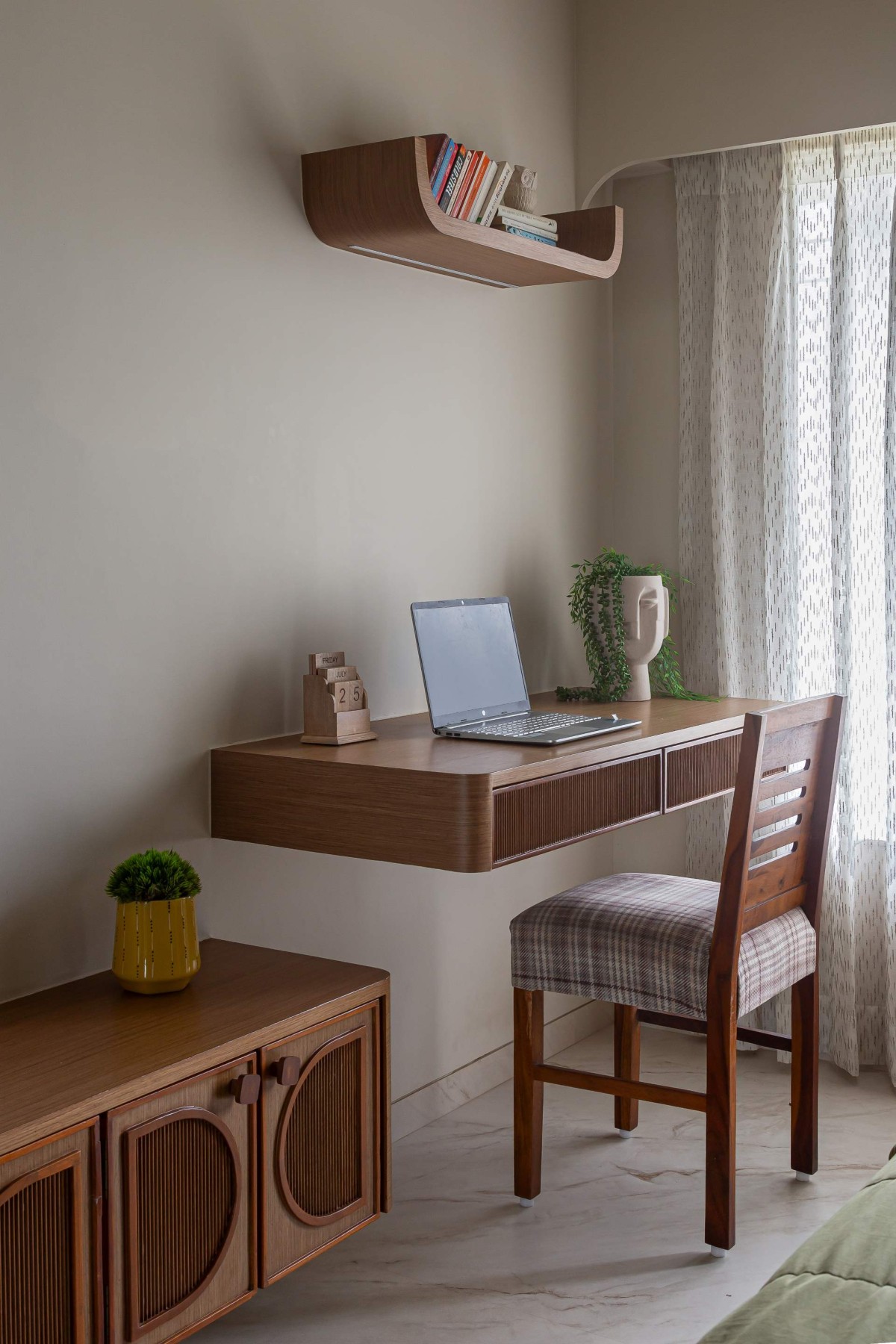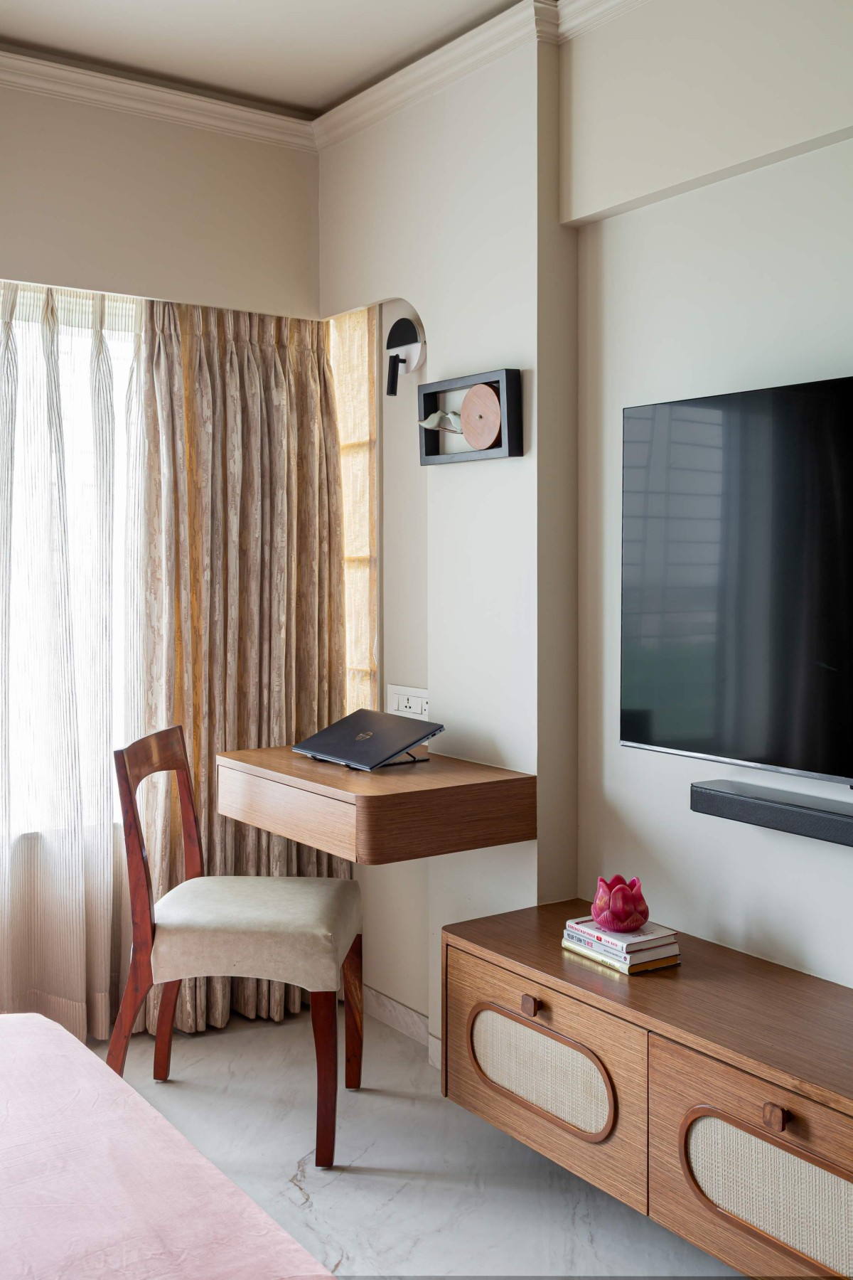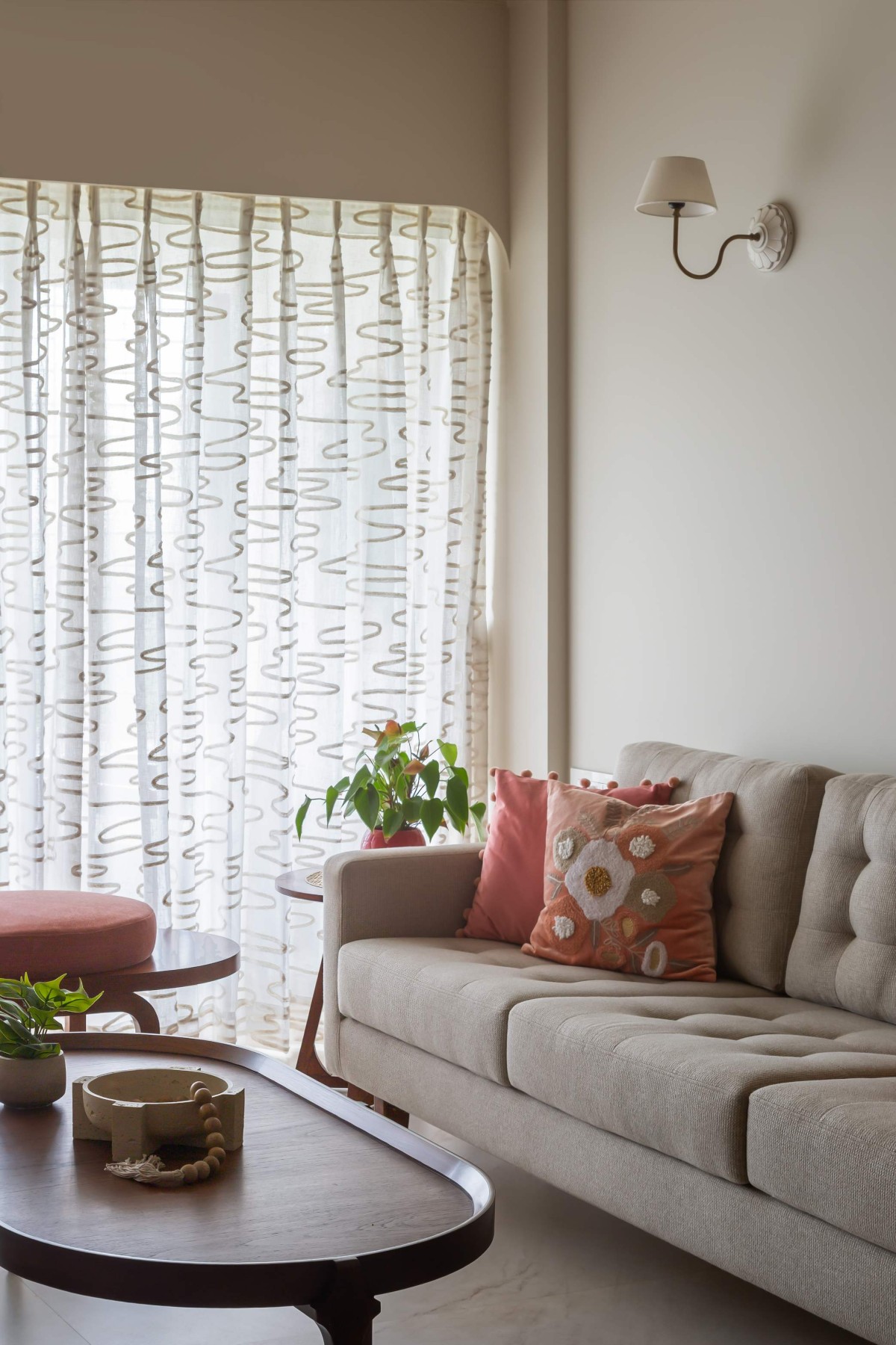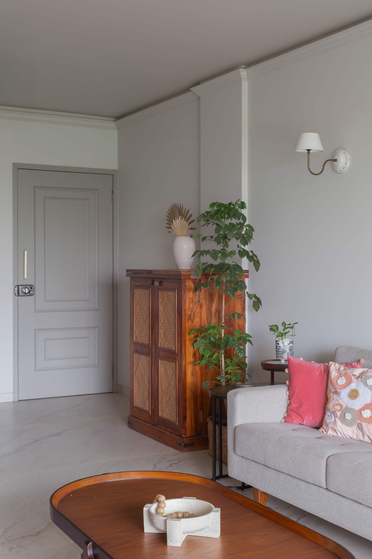Tucked away in Versova, this 3BHK is a study in softness  of light, colour, and form. Rooted in the client’s love for greenery and simplicity, the home balances minimalism with warmth.