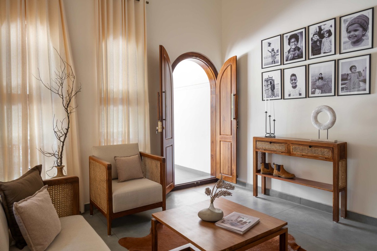 Conceptualized and executed by The Design Verses for Mr. Thomas and Mrs. Leela, the project encompassed complete site redevelopment — from architectural planning and interior design to landscape design and execution. Signature arches define the spatial experience, while the thoughtful interplay of materials, textures, and soft landscaping lends the home a sense of warmth and continuity.