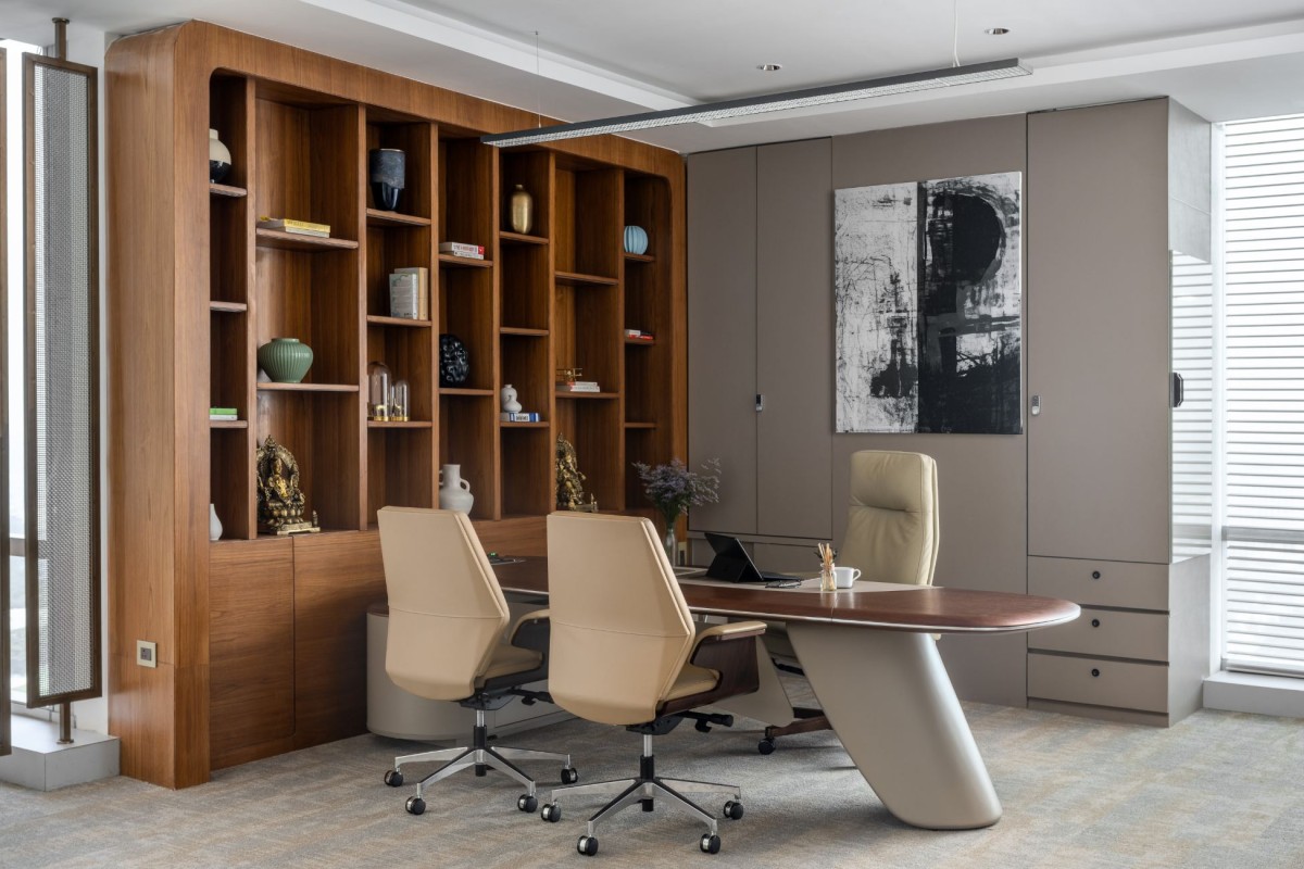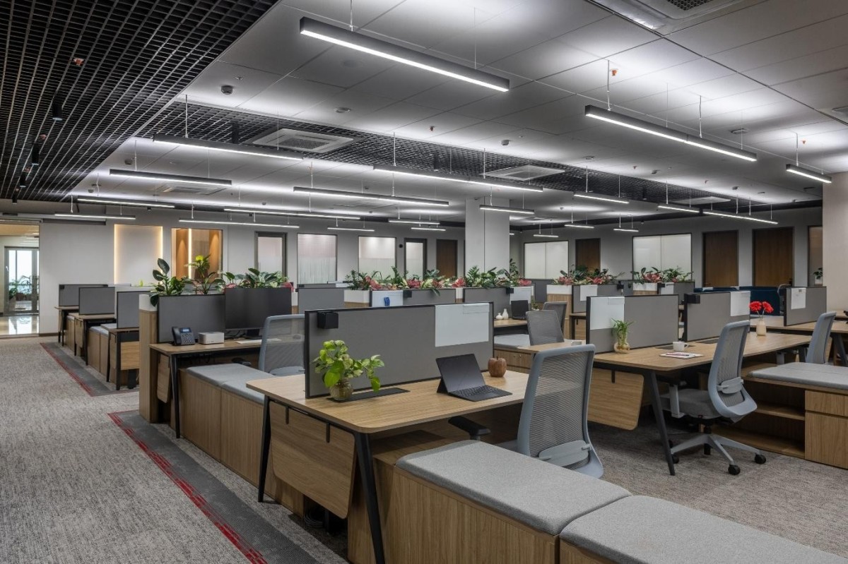 Open workspaces thoughtfully crafted for seamless collaboration natural materials and muted tones bring warmth without distraction, Our team considered the ergonomic design meets refined aesthetics to support well-being Greenery and light are integrated to inspire creativity and focus a space where efficiency and comfort coexist, encouraging purposeful work.