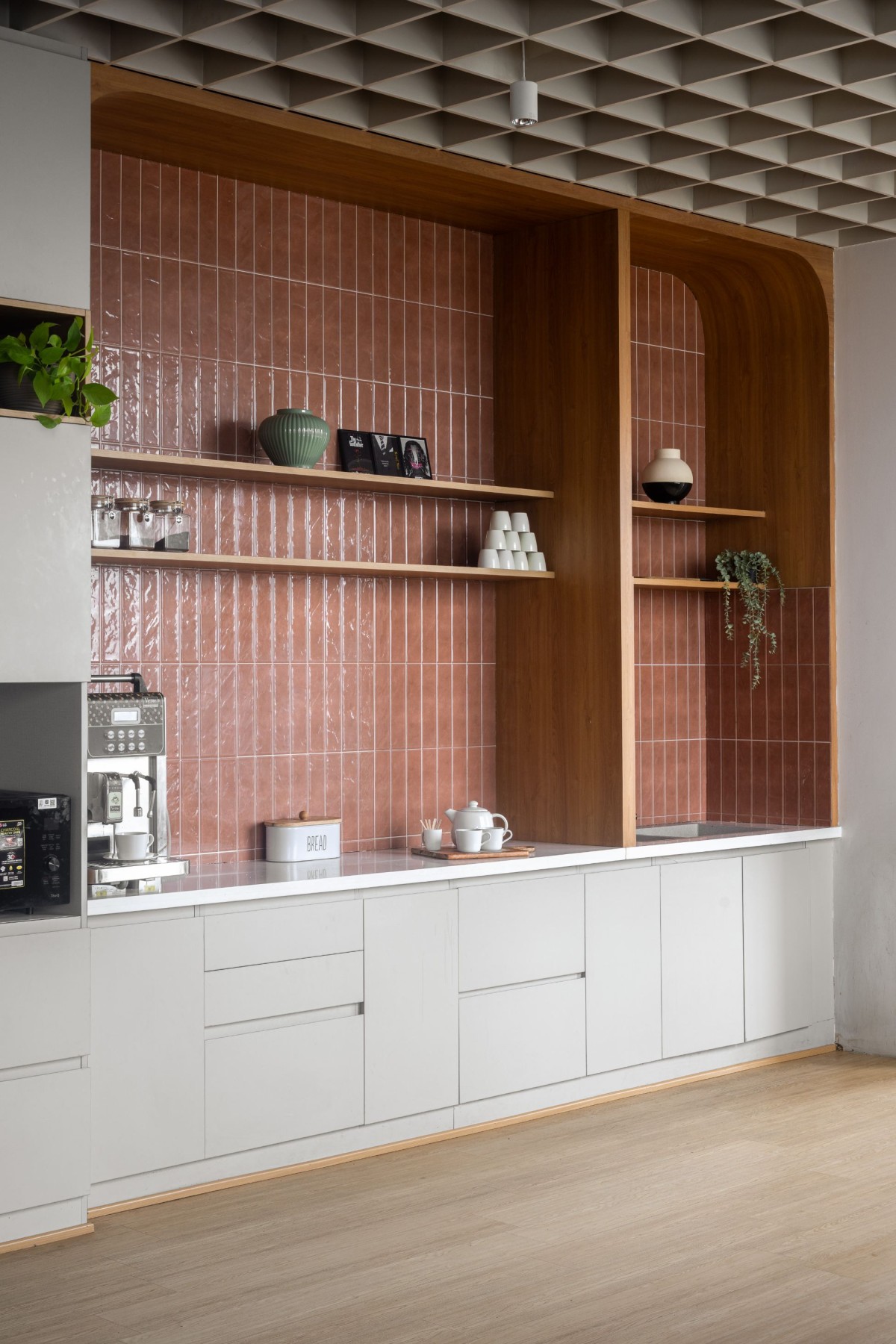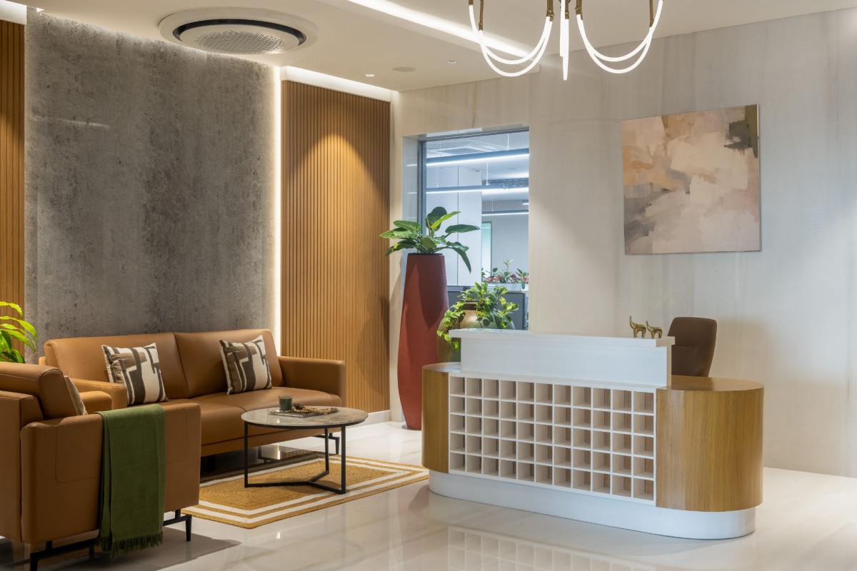 “With its open layout and tactile finishes, the cafeteria sets a welcoming rhythm, a pause point in the workspace where design invites connection.”– Ar. Masoom jindal Soft tones, clean lines, and thoughtful textures come together in this space where comfort meets elegance. Subtle pops of the colour and natural light breathe life into the design, creating an inviting atmosphere effortlessly balancing minimalism with vibrant warmth Turnkey 5.0 has designed in such a way that the space naturally supports both focus and interaction, blending aesthetic simplicity with everyday practicality.