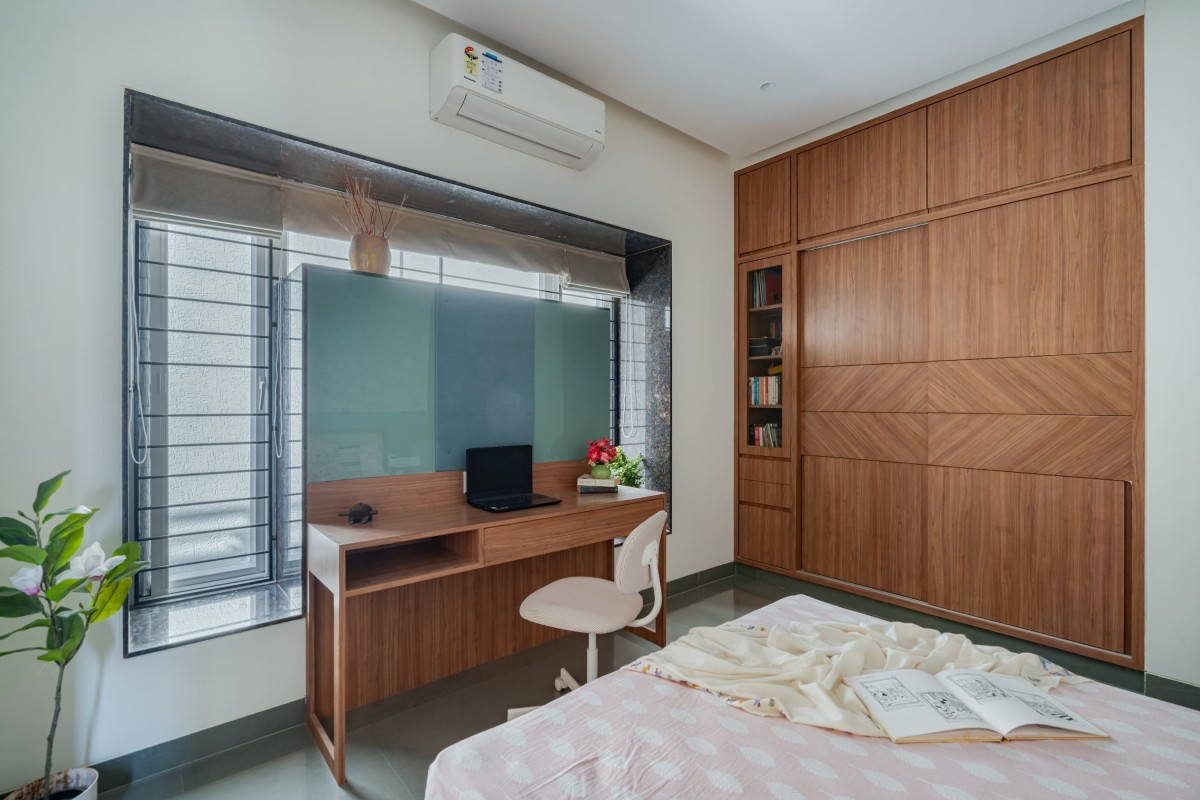 Structurally, the house employs a conventional RCC framed system. Integrating the courtyard within a compact structural grid demanded precise coordination of beam alignments and load distribution to maintain openness without visual heaviness. Lightweight blocks were used for wall construction, reducing dead load while enhancing thermal performance.