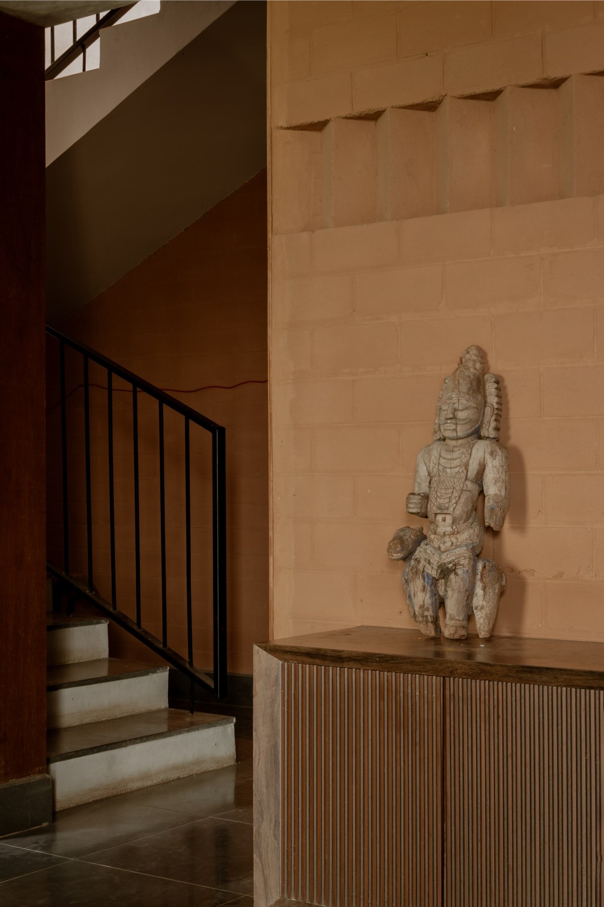 Passage to staircase of Mud House by Aagaram Architects