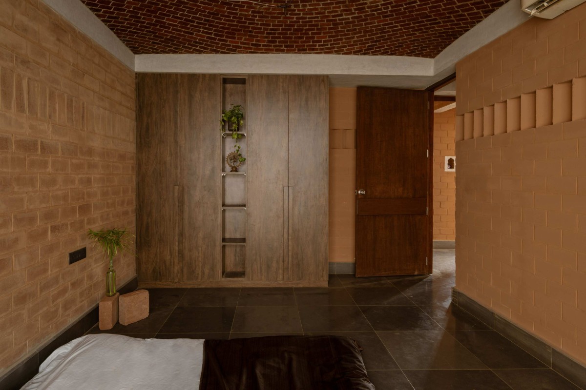 Bedroom of Mud House by Aagaram Architects