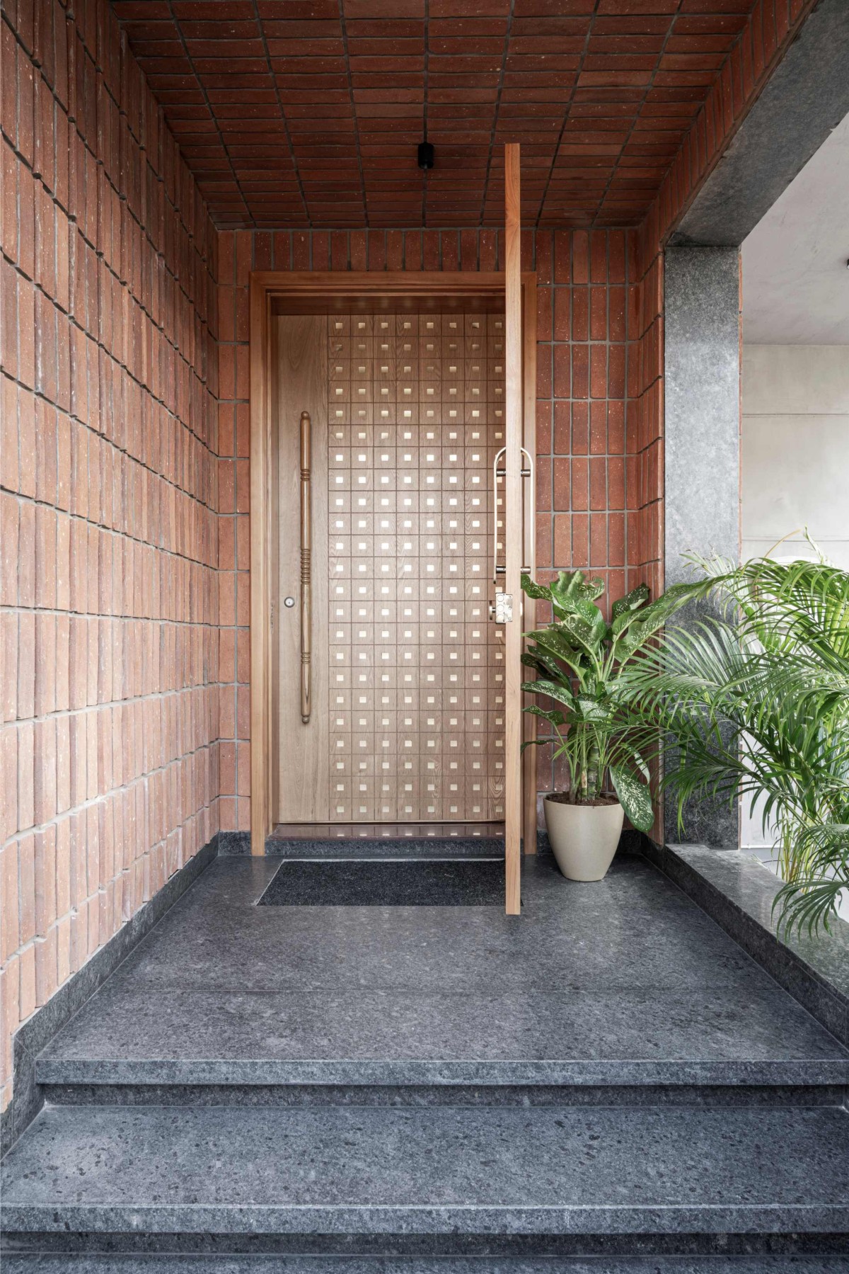 Detailed shot of external facade of Nilayam House by V Shah Design Studio