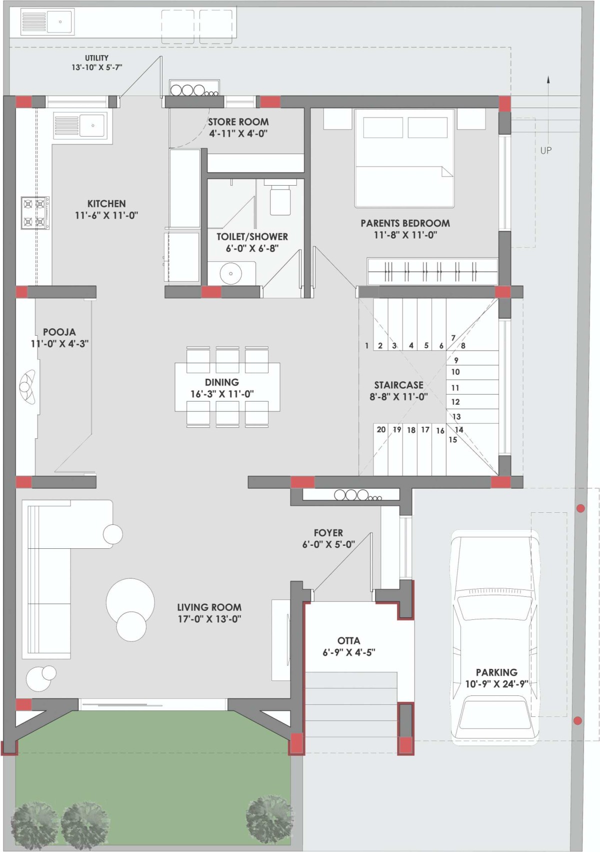 Ground Floor Plan of Nilayam House by V Shah Design Studio