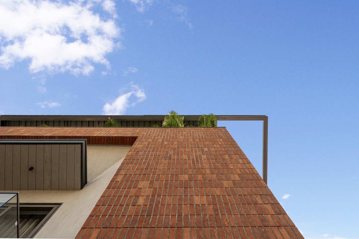 Externally, the house emerges as a striking brick block from a concrete mass, a testament to the meticulous attention to material play and execution that defines this architectural masterpiece. Where every detail tells a story of craftsmanship, innovation, and the enduring beauty of architectural design.