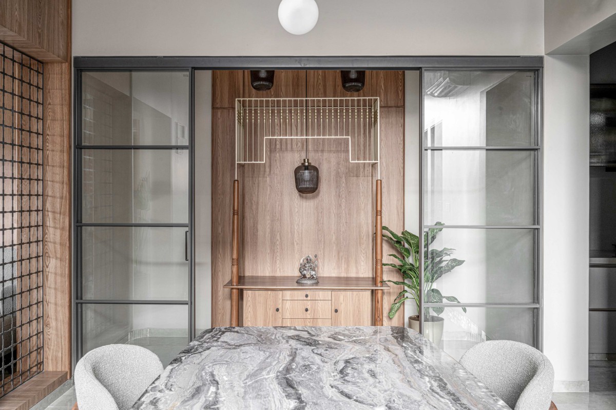 Dining to Pooja Area view of Nilayam House by V Shah Design Studio