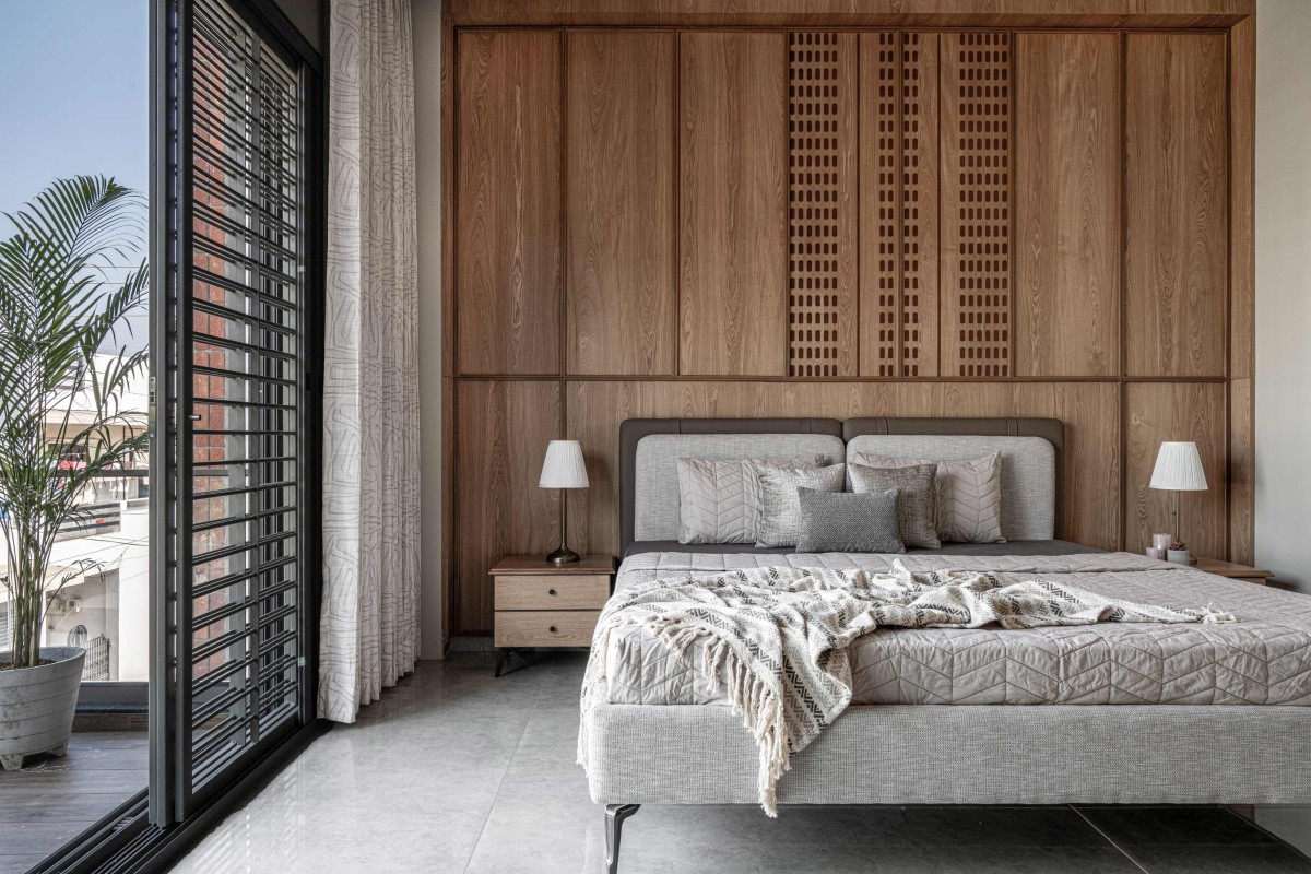 Parents Bedroom of Nilayam House by V Shah Design Studio