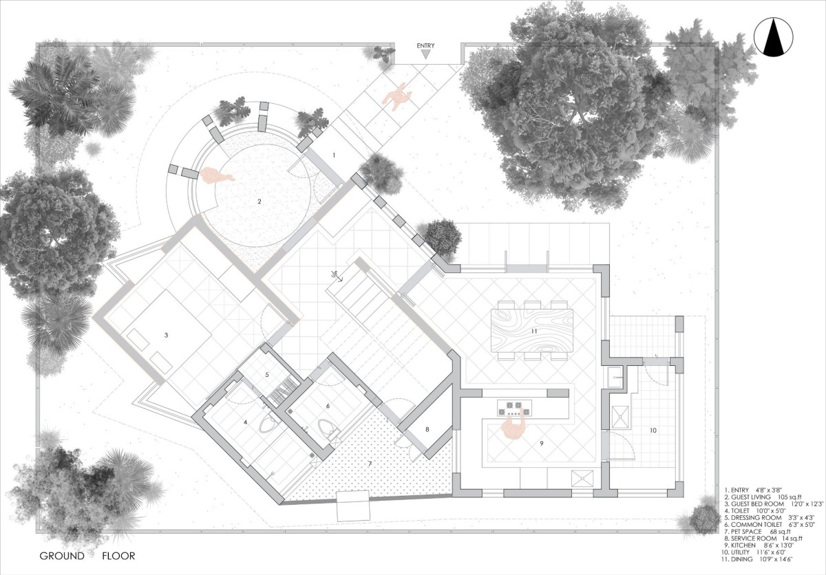 Ground floor plan of Onella by Bhutha Earthen Architecture Studio