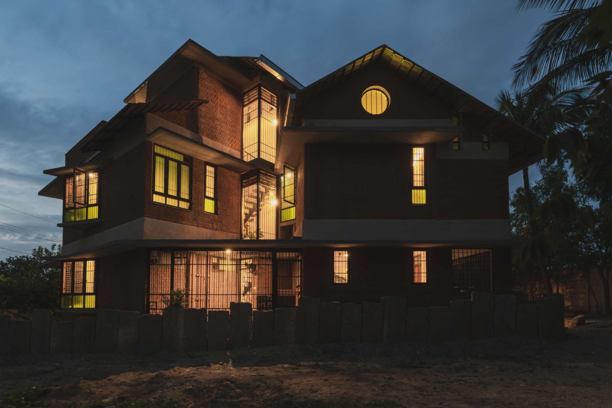 Night exterior view of Onella by Bhutha Earthen Architecture Studio