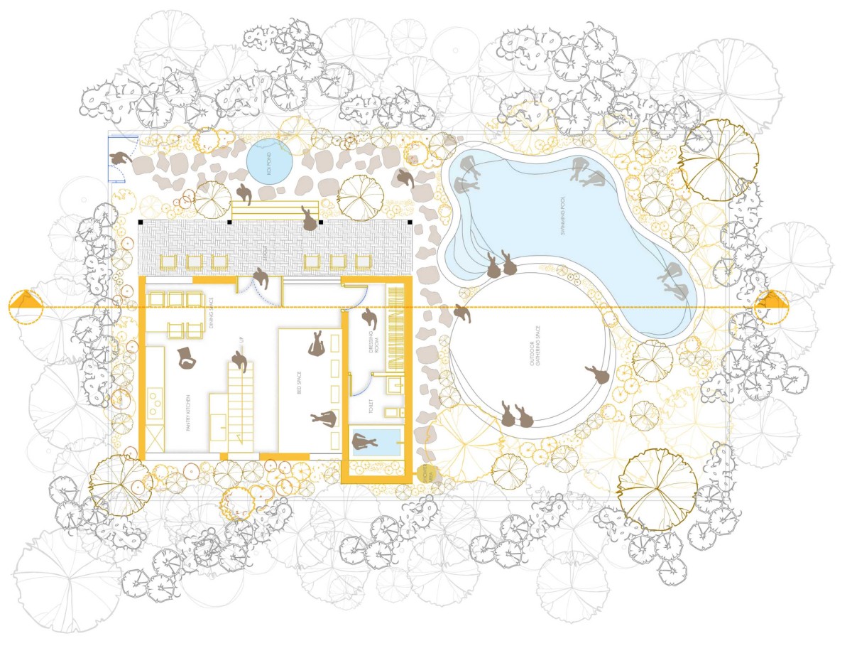 Ground Floor Plan of Paadi Retreat by 7th Hue Architecture Collective