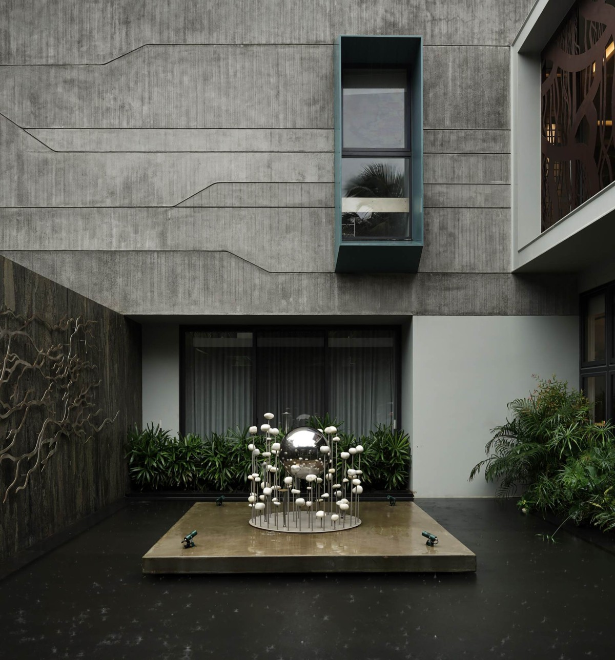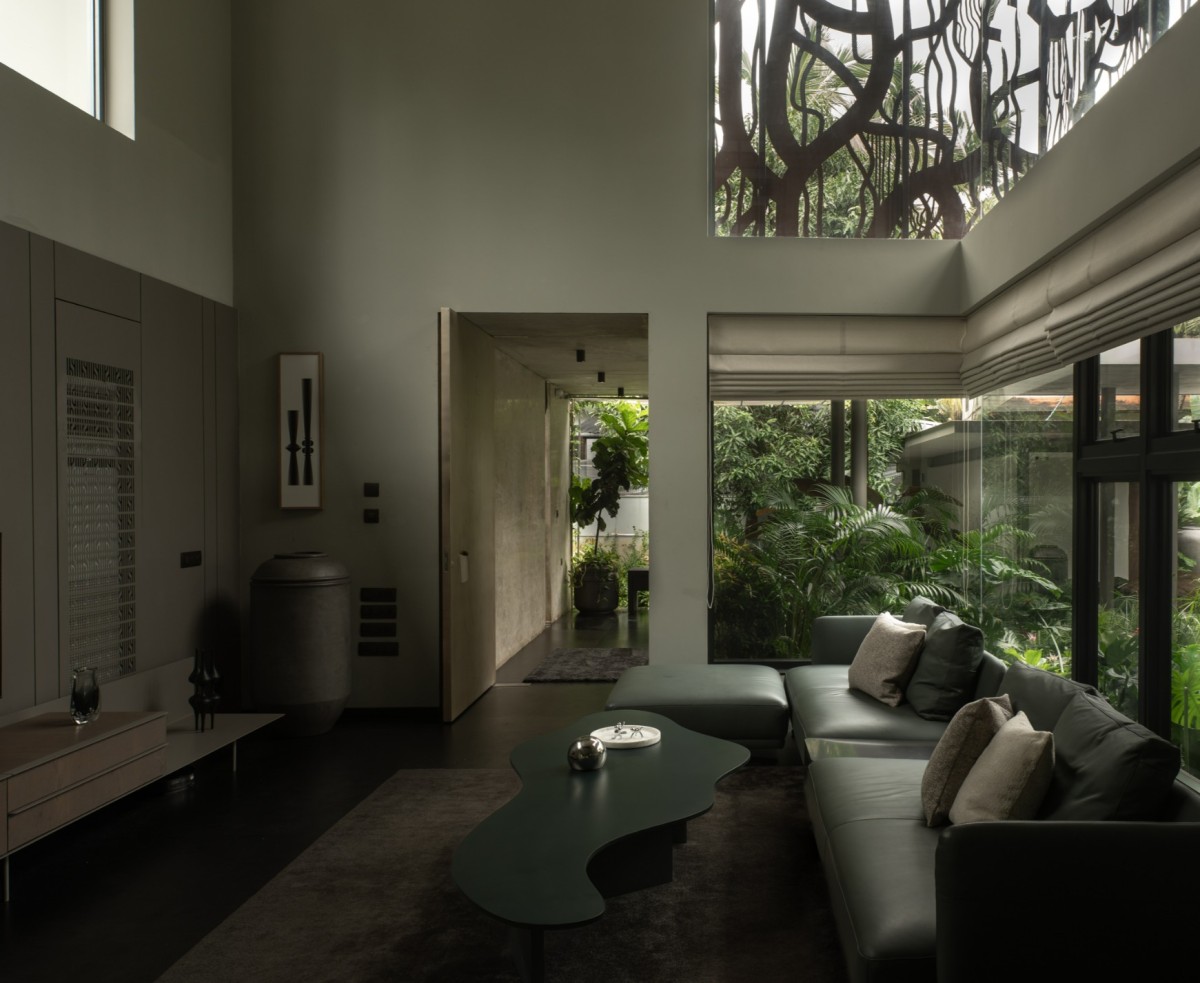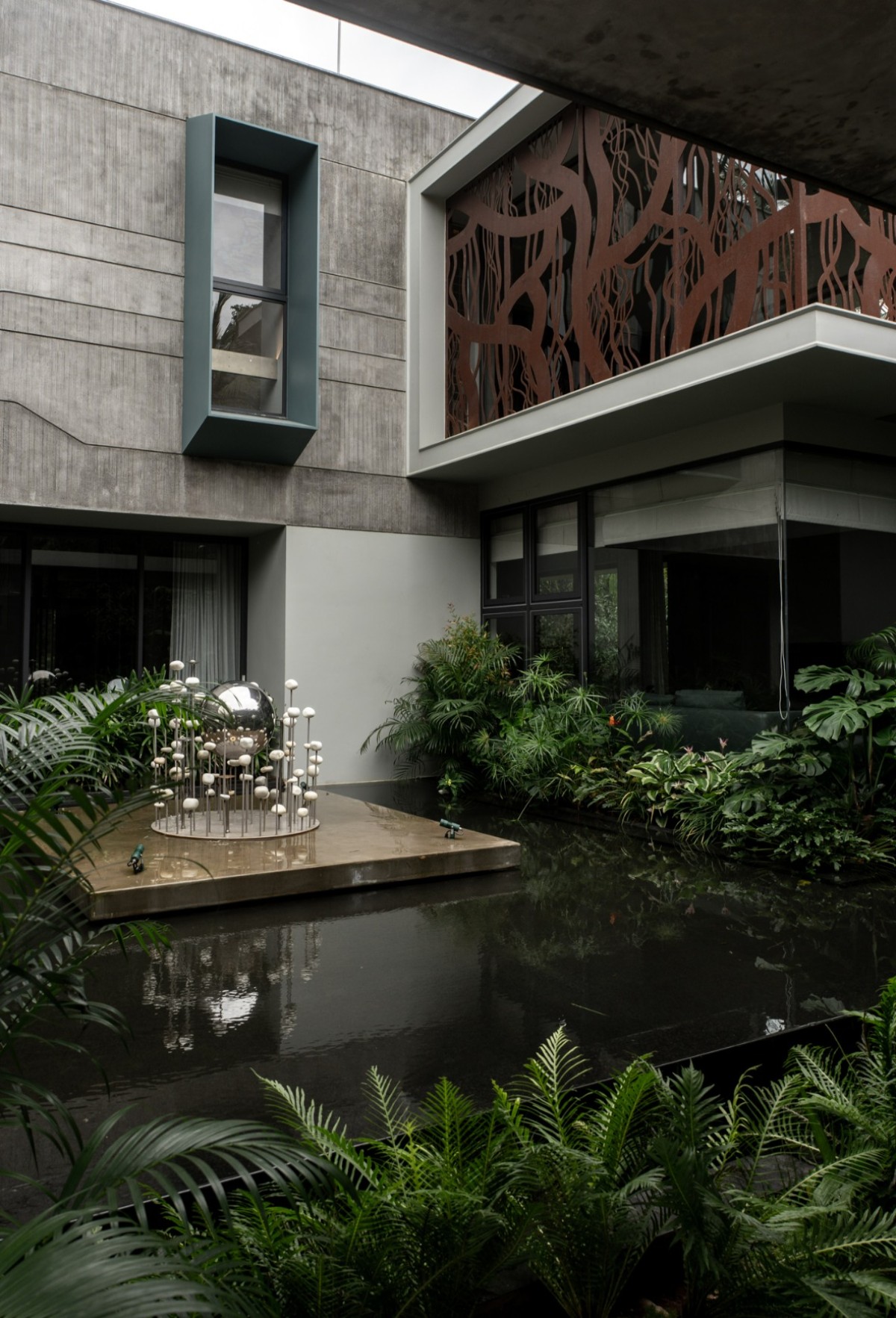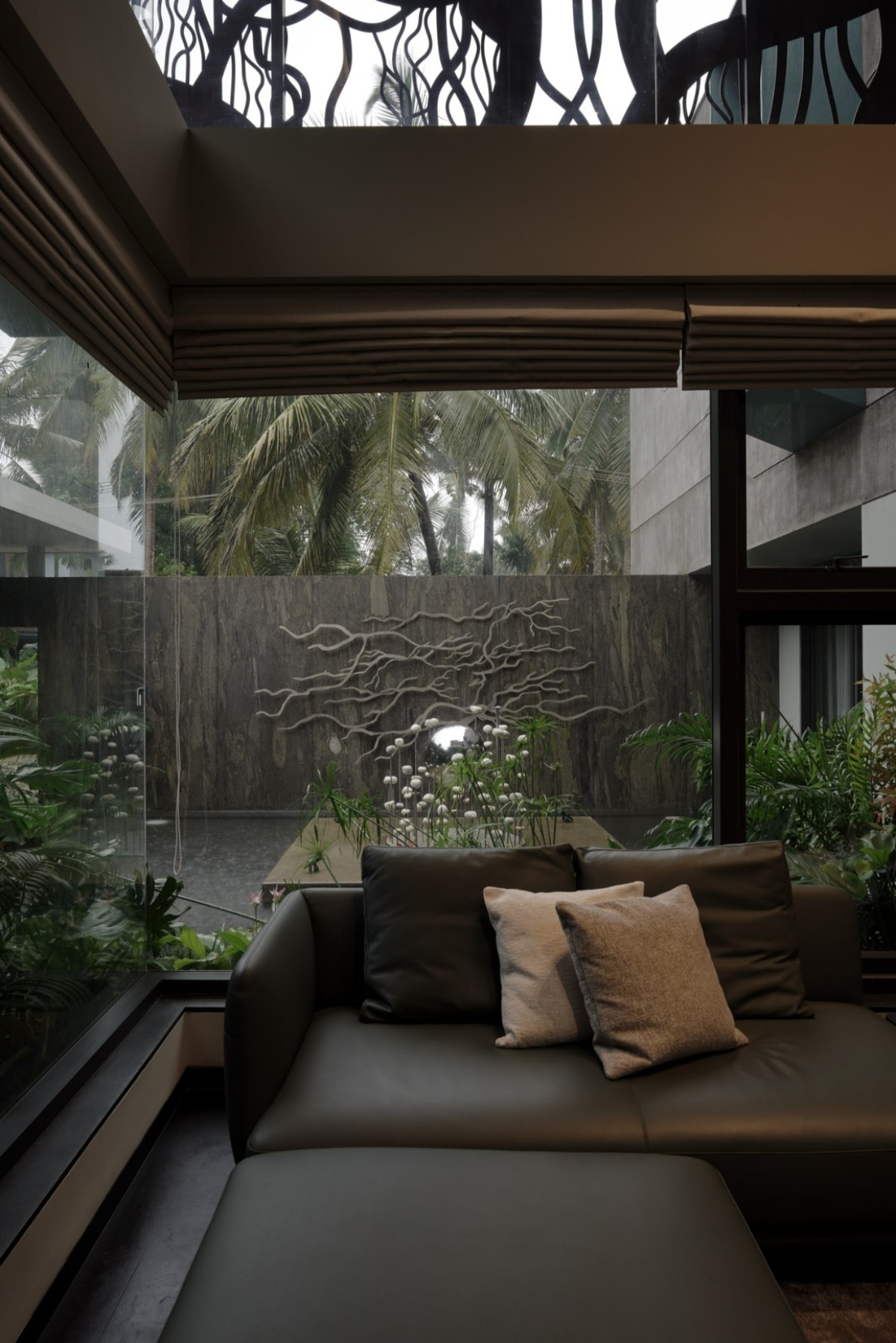 Anchoring these blocks, is a long, linear wall at the front, acting as a visual screen, a structural element and most importantly, a curtain-lift to the magnificence of the house. The layered form was brought to life by imagining spaces in 3D volumes, not 2D areas, and how these volumes should interact with each other, physically and visually.
