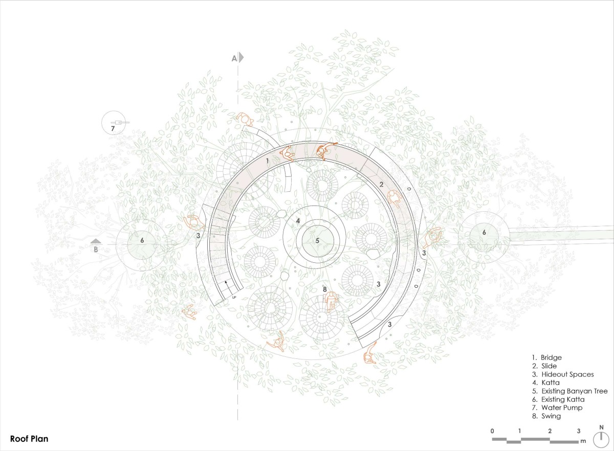 The POD for Happiness is more than a play area; it’s a multifunctional community space. It connects people of all ages, offering a place to read, play, swing, slide, or simply relax. Blending seamlessly with its natural surroundings, it has become an essential part of the village, enriching lives and creating a sense of togetherness under the banyan tree’s timeless shade.