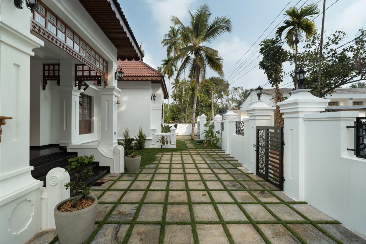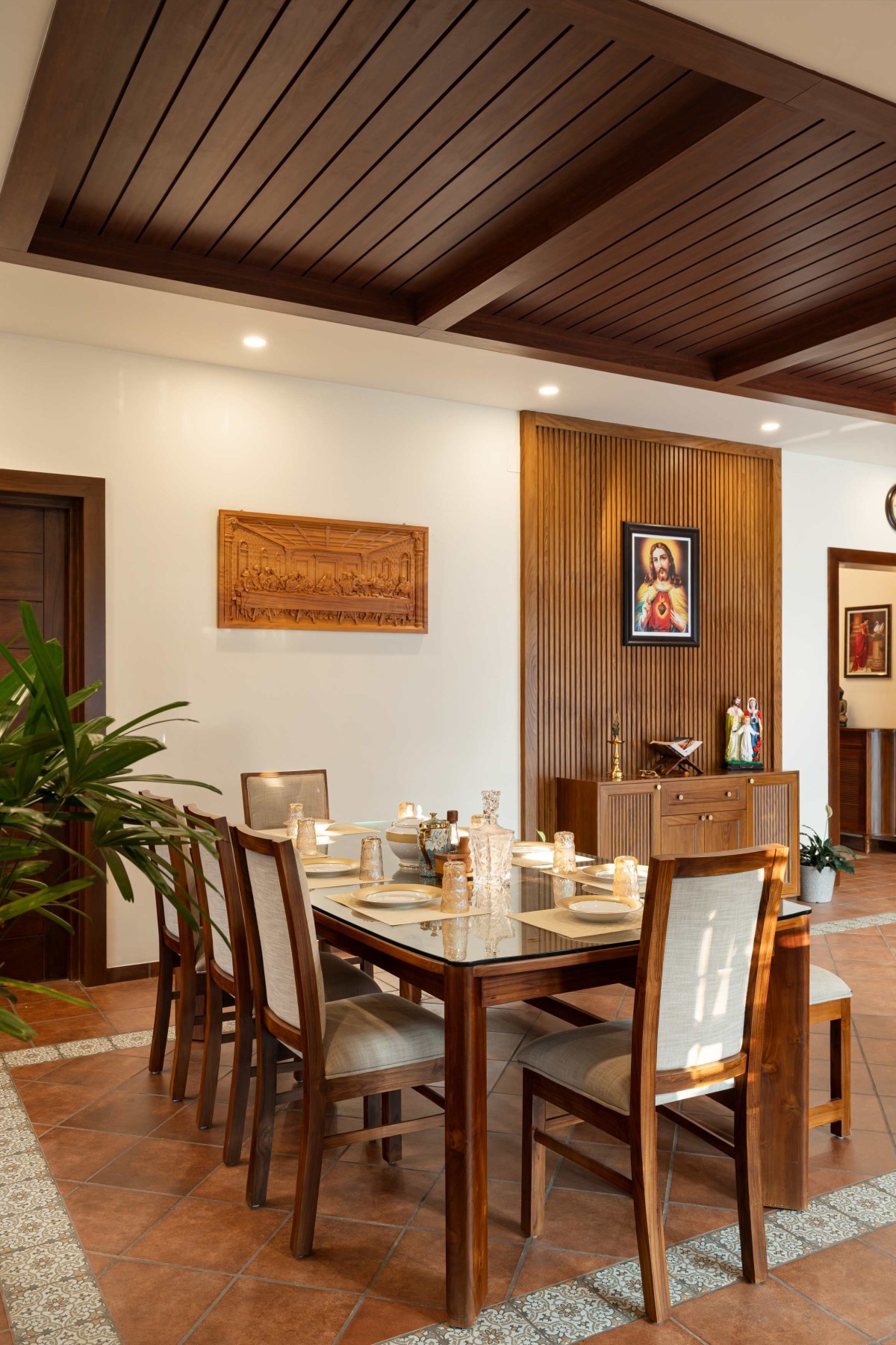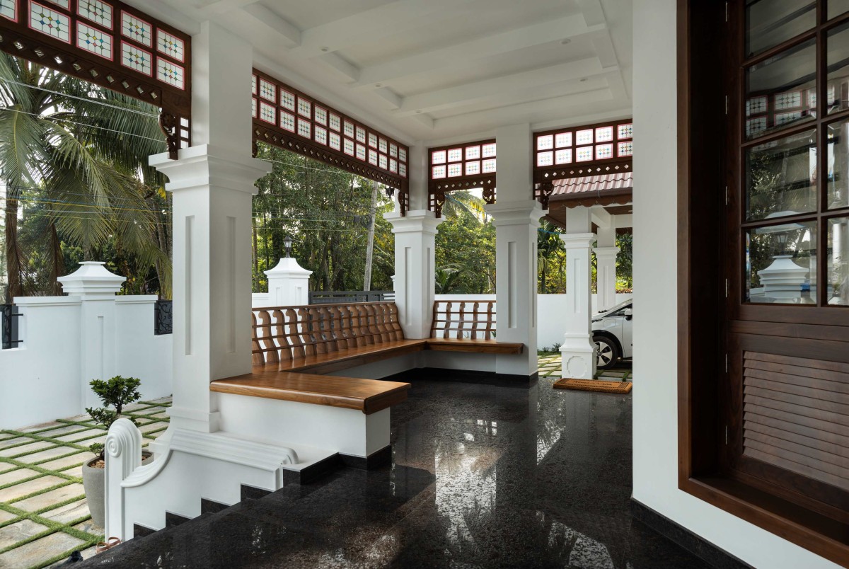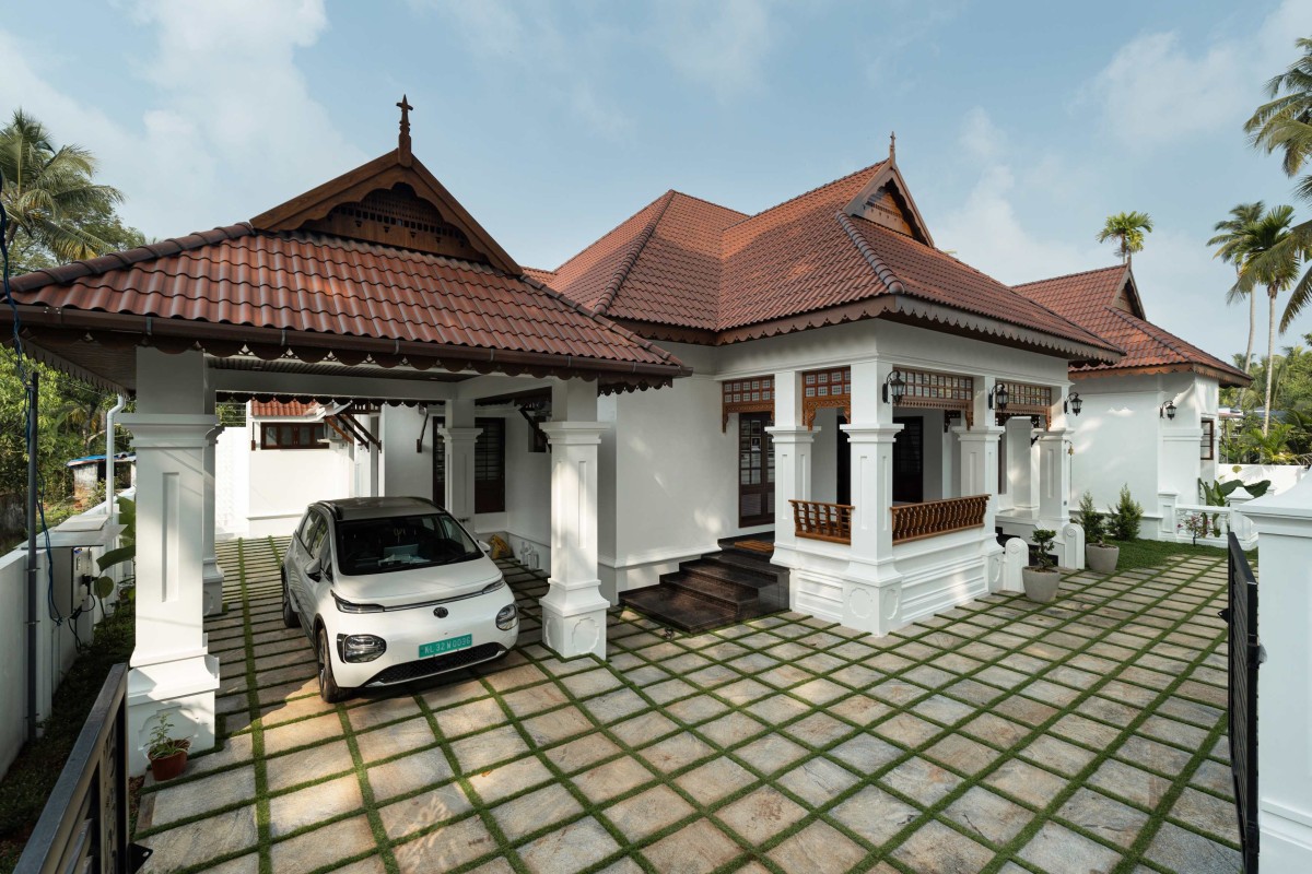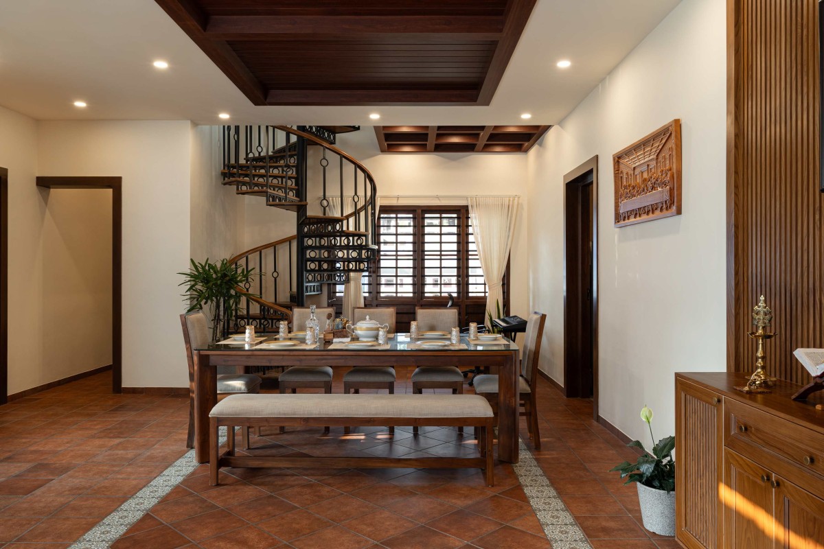 This single-storey sustainable home in Ezhupunna, Alappuzha blends traditional Kerala architecture with tropical design. Inspired by the “kulakkadavu” concept, a central pond encourages family interaction while enhancing the landscape. Despite being near lakes and beaches, adding a pond improves year-round moisture and cooling, especially during hot months. With wide openings, the home benefits from natural ventilation and sunlight, creating a bright, airy space. The perennial water supply makes the pond both a practical and aesthetic feature in this eco-friendly design.