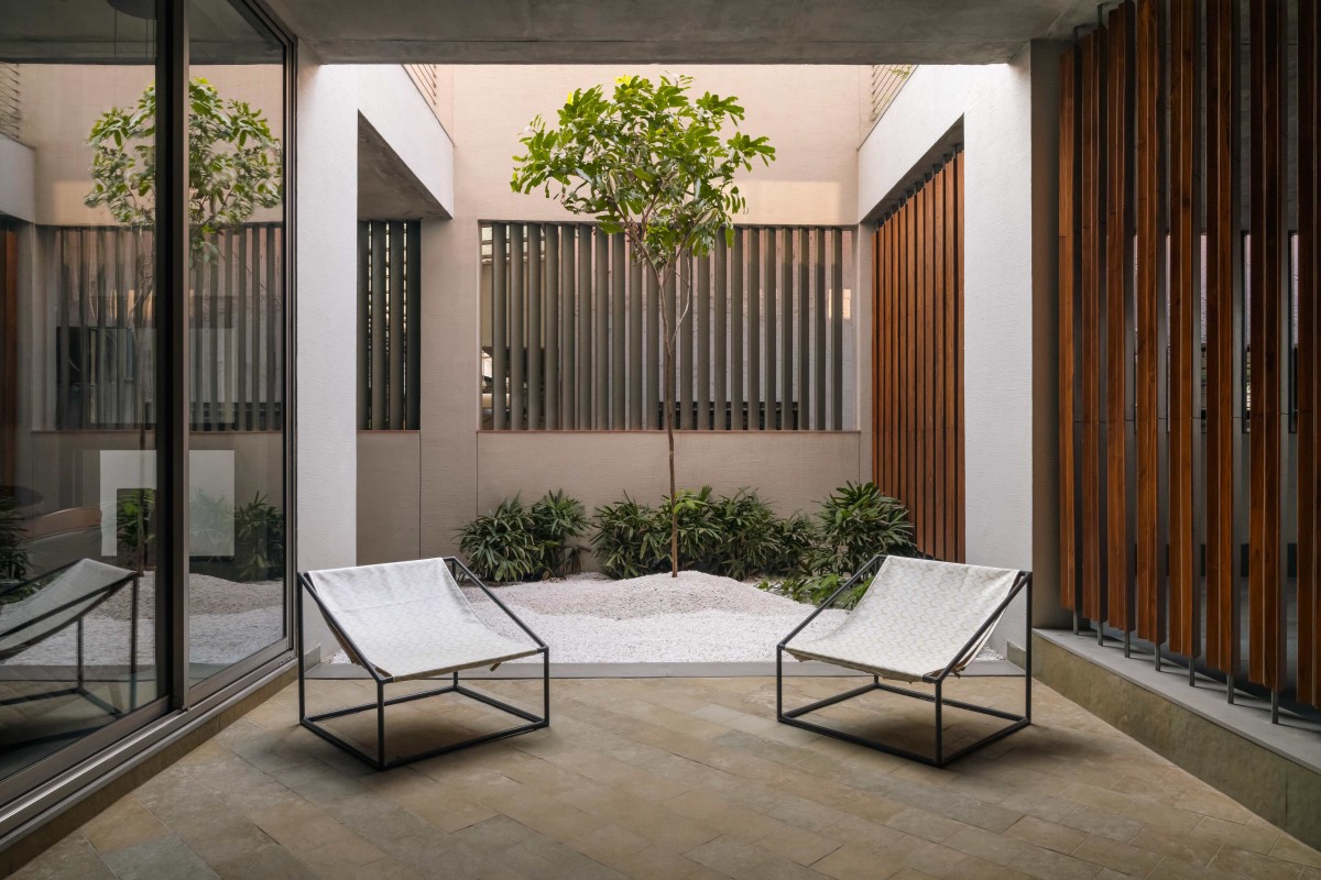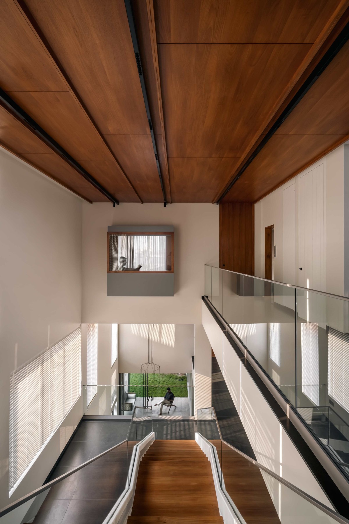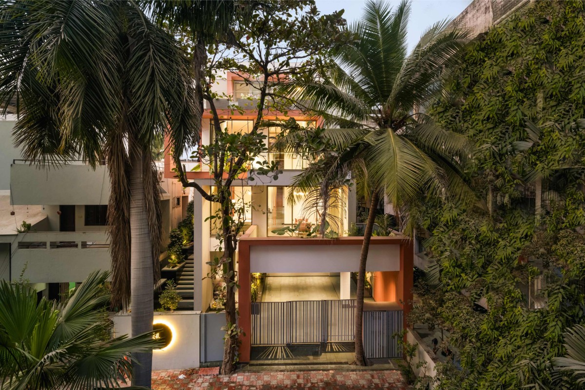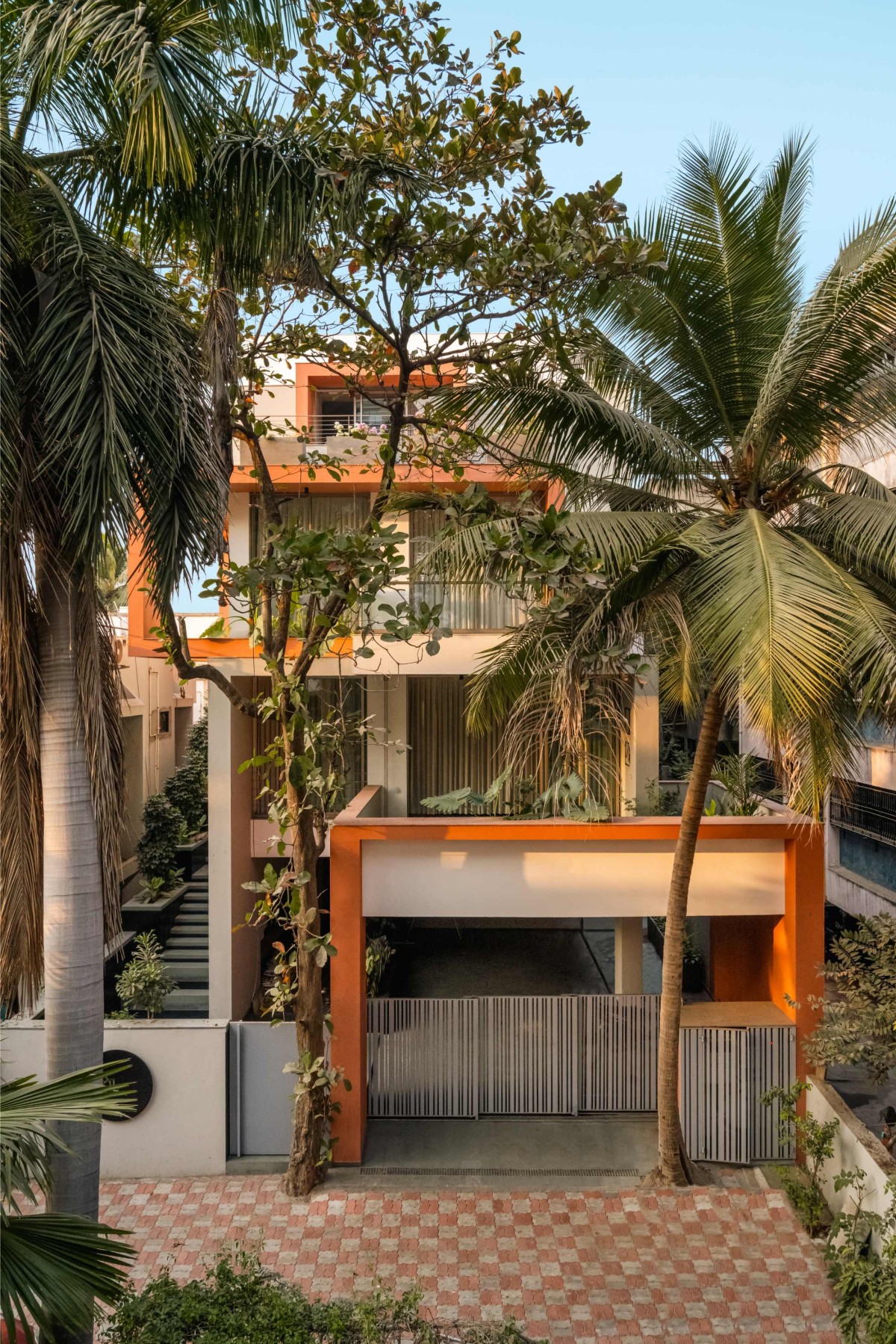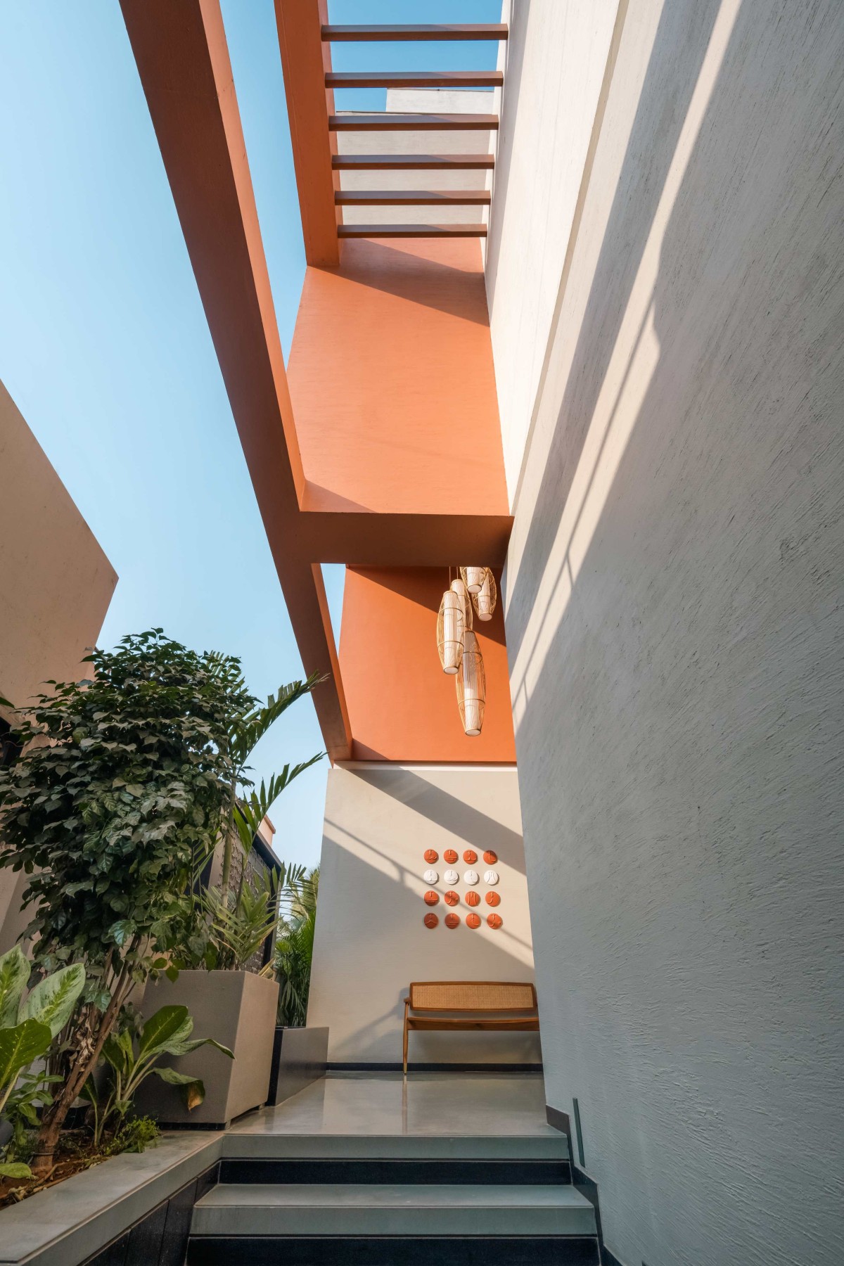 Situated in a dense neighborhood of Surat, Prakashalay is a residence shaped by light, circulation, and spatial relationships. Designed by Associated Architects (I) Pvt. Ltd., an Ahmedabad-based design studio, the original residence was built in 2003 for a family of doctors on a 300 sq. yard site. Over the last two decades, their growing family and evolving needs demanded for an expansion and the client decided to double their existing plot to 600 sq. yards. Prakashalay is a 14,000 sq. ft. residence, on a narrow plot with 1:3 ratio, explores openness and transparency in a vertically stacked home, yet stays rooted in the Indian way of living.