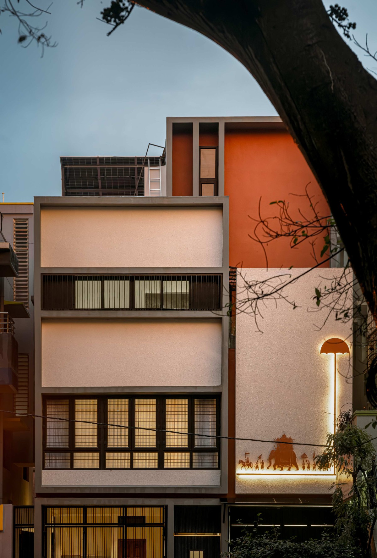 Dusk light exterior view of Punyaprajna by From Around Here
