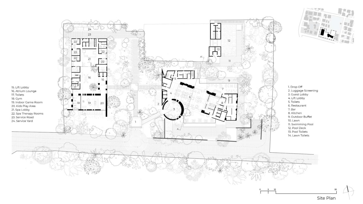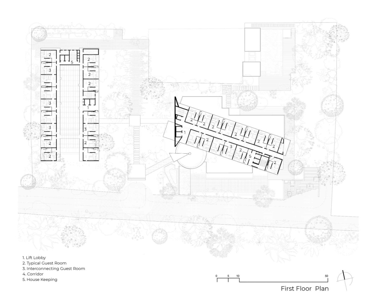 It is also important to view the project in comparison to hospitality space with similar densities. Hotels in the vicinity follow urban models, with thematic applications, the identity often being alien to the place.