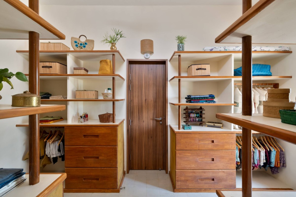 Walk in wardrobe of Residence Panchatattva by Deepak Berthalome Architects