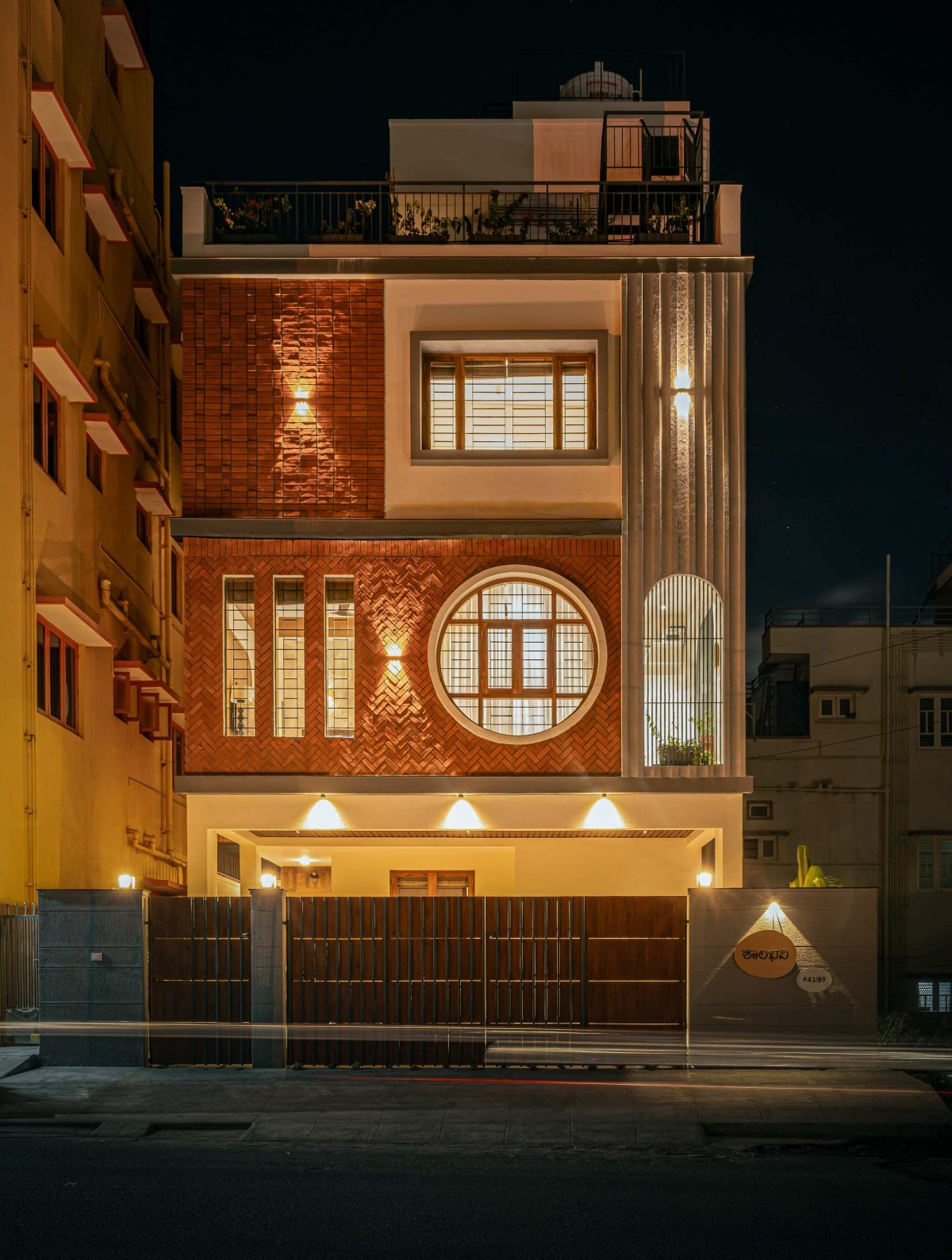 Night exterior view of Shambhavi Residence by Design Matters Architect