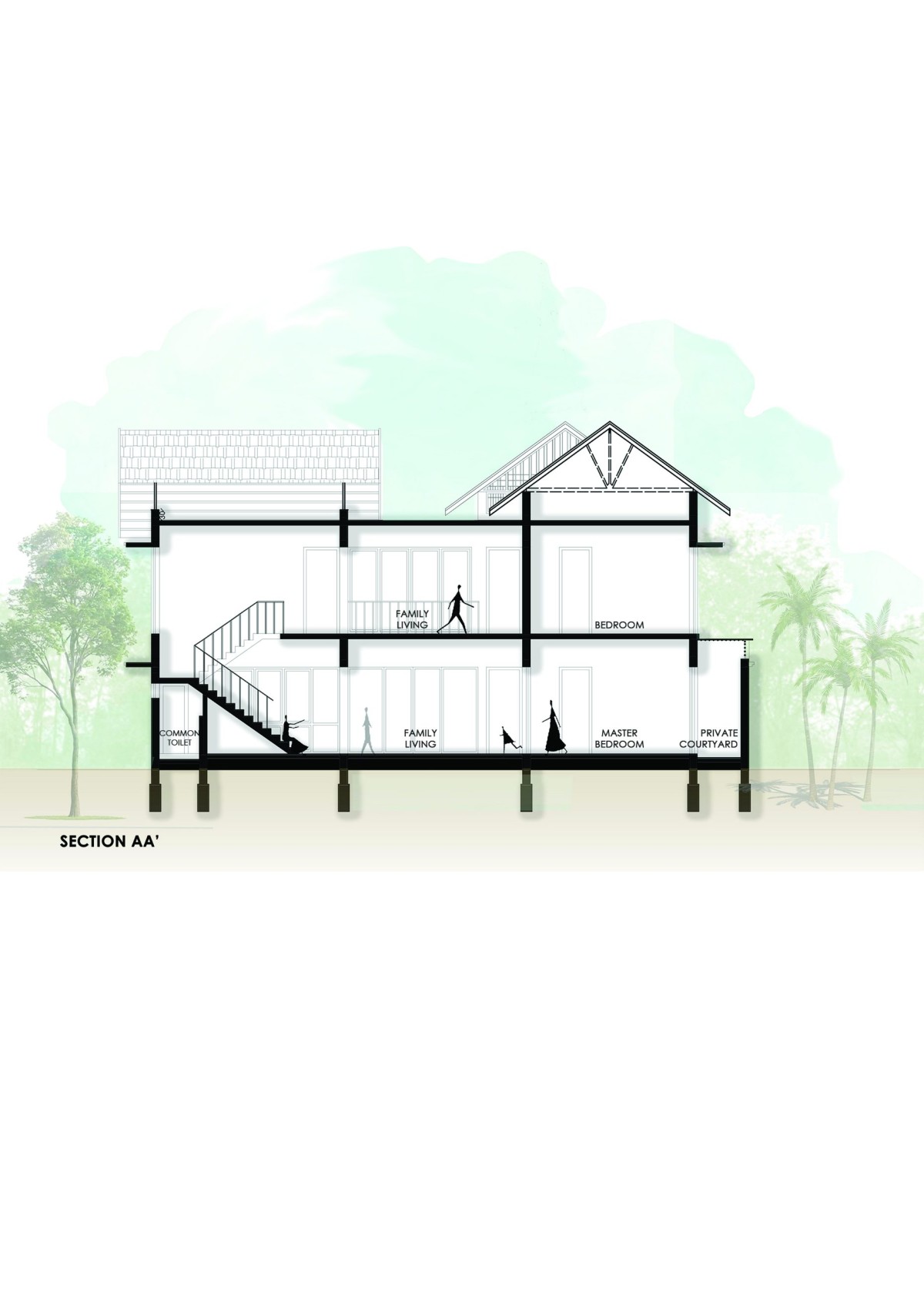 Section AA of Shekharam by TWO i Architects