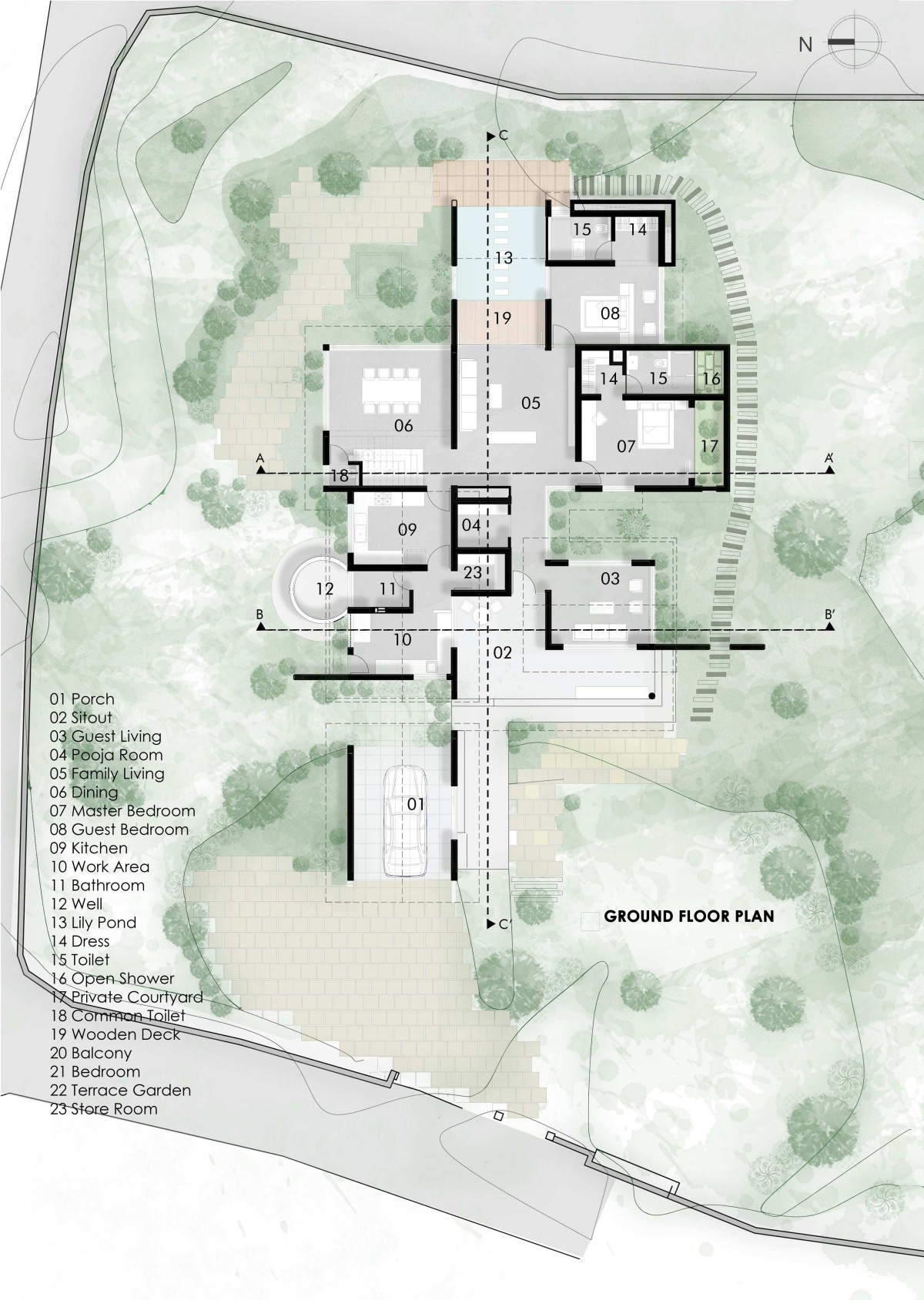 Ground Floor Plan of Shekharam by TWO i Architects