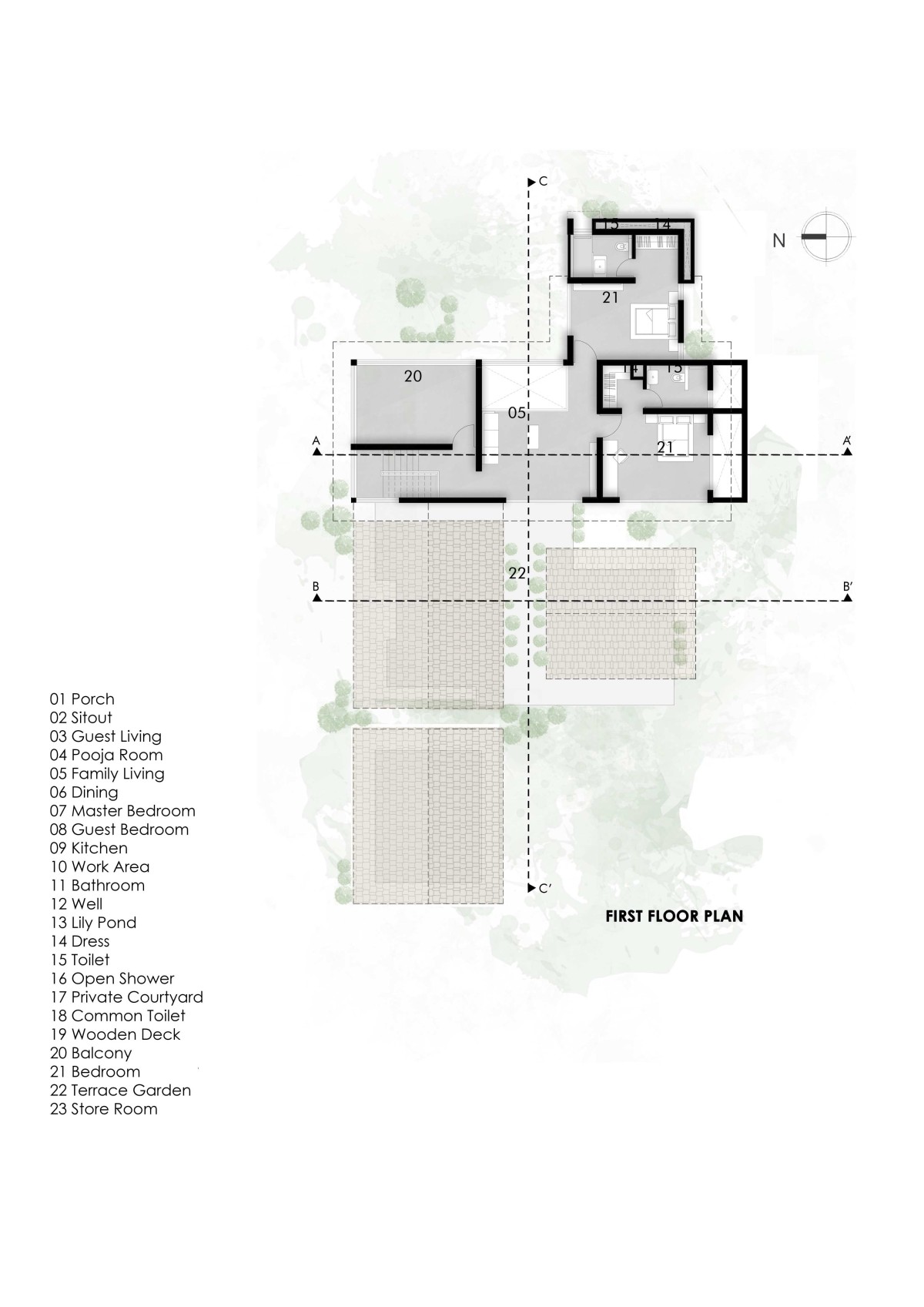 First Floor Plan of Shekharam by TWO i Architects