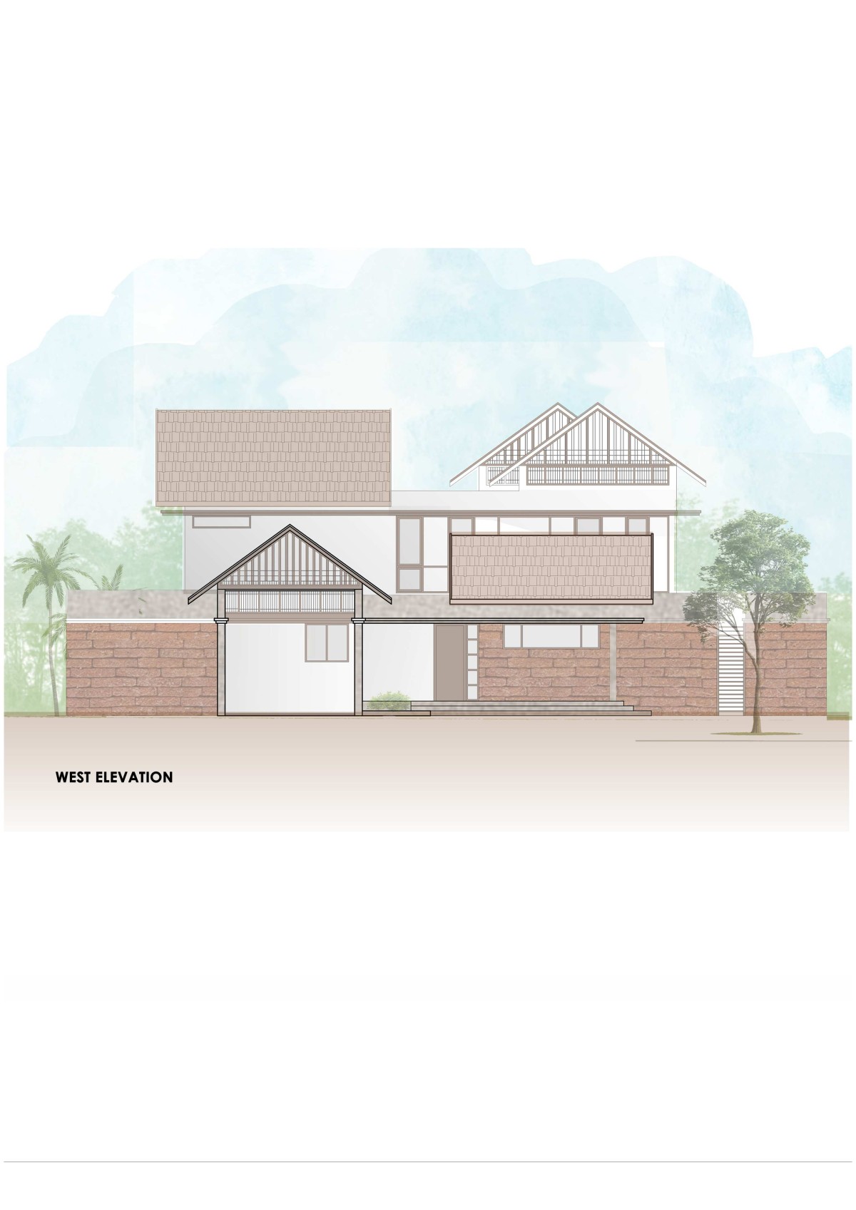 West Elevation of Shekharam by TWO i Architects