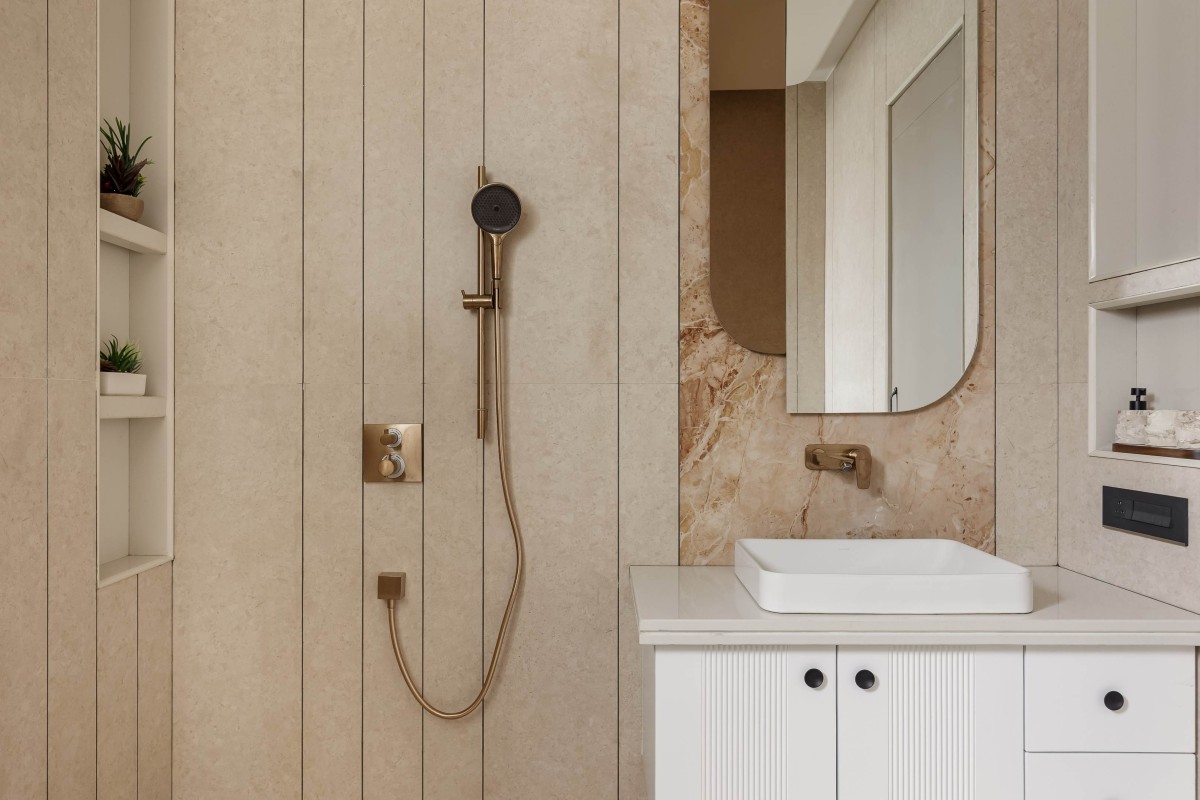 Bathrooms continue the theme of understated luxury with closed vanities and varied mirror shapes. Through careful design and thoughtful detailing, GreyHatch Architects created a home that balances aspiration with authenticity—resulting in a residence that feels refined, personal, and unmistakably its own.