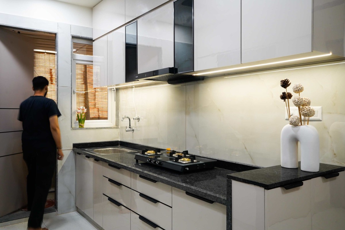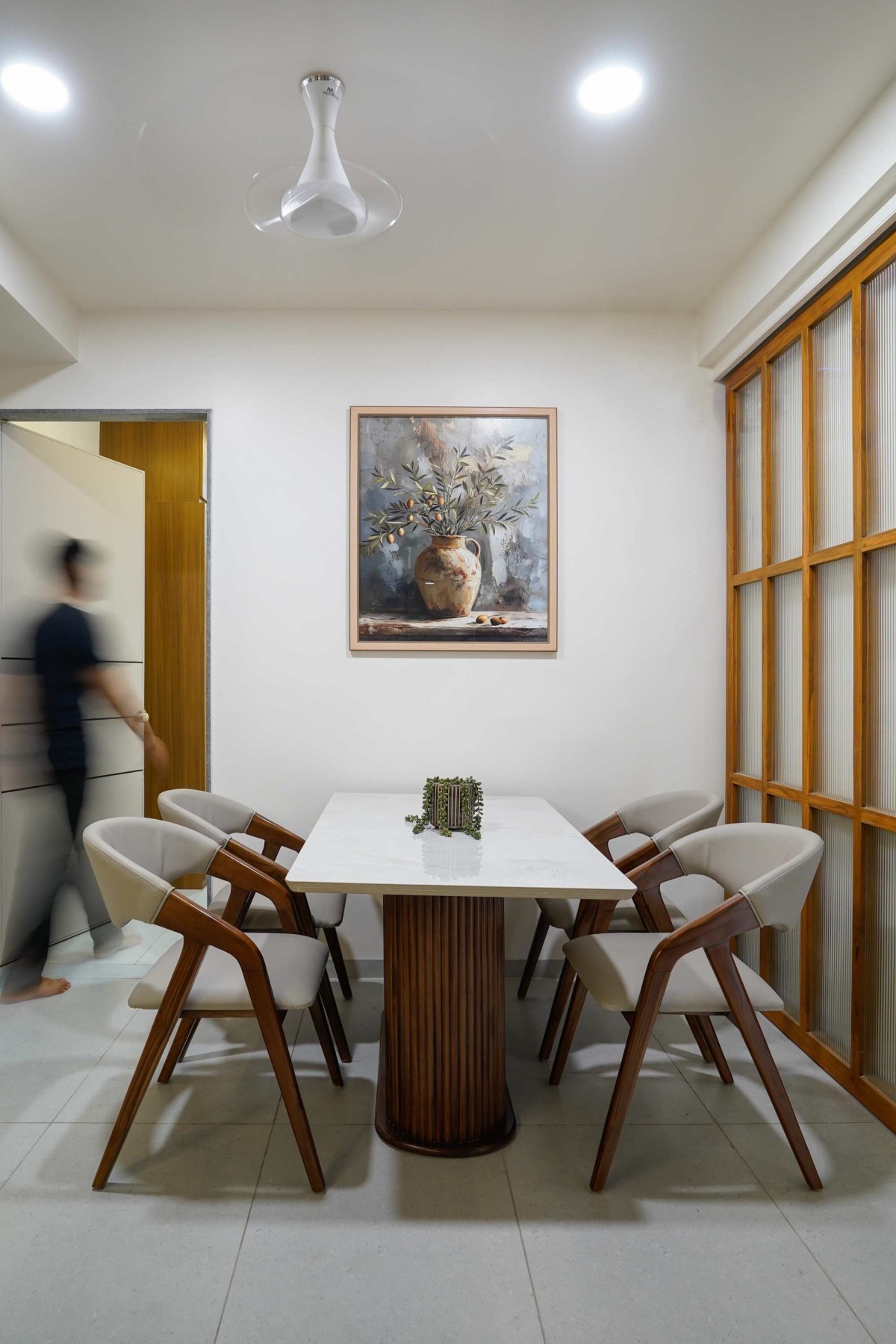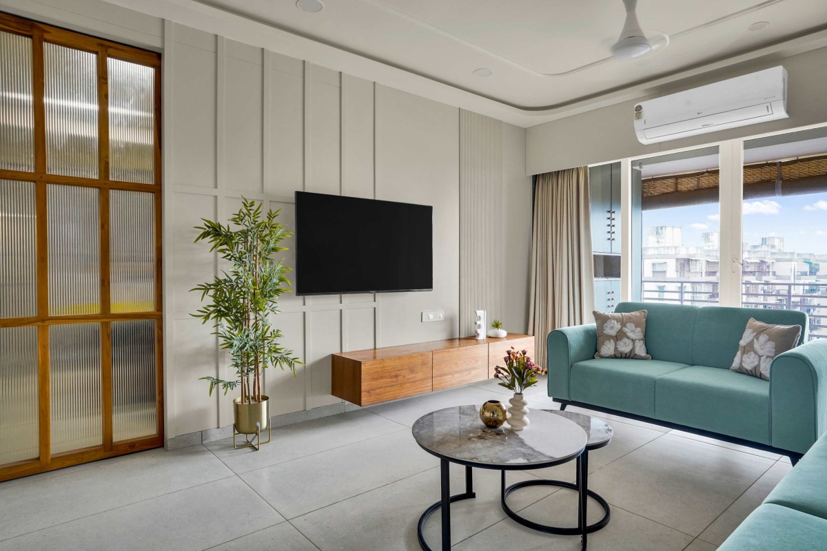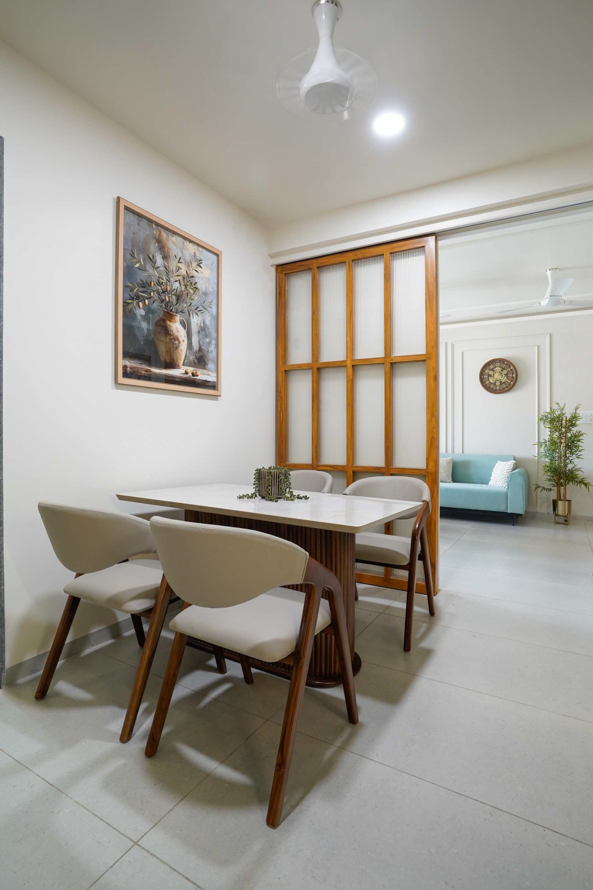 Each bedroom carries a distinct identity while staying loyal to the overarching design grammar. The master bedroom leans into refined simplicity—ample amount of light, elegant trims, muted tones, and seamlessly integrated storage create an envelope of calm. The daughters’ shared room is a gentle expression of boho playfulness, with airy hues, multifunctional furniture, and patterns that spark creativity. For the grandparents, comfort leads the aesthetic: ergonomic furniture, slip-resistant surfaces, and decluttered circulation ensure ease without compromising elegance.