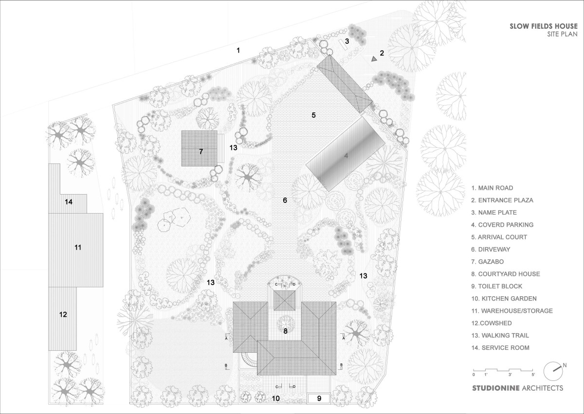 Site Plan of Slow Fields House by Studionine Architects