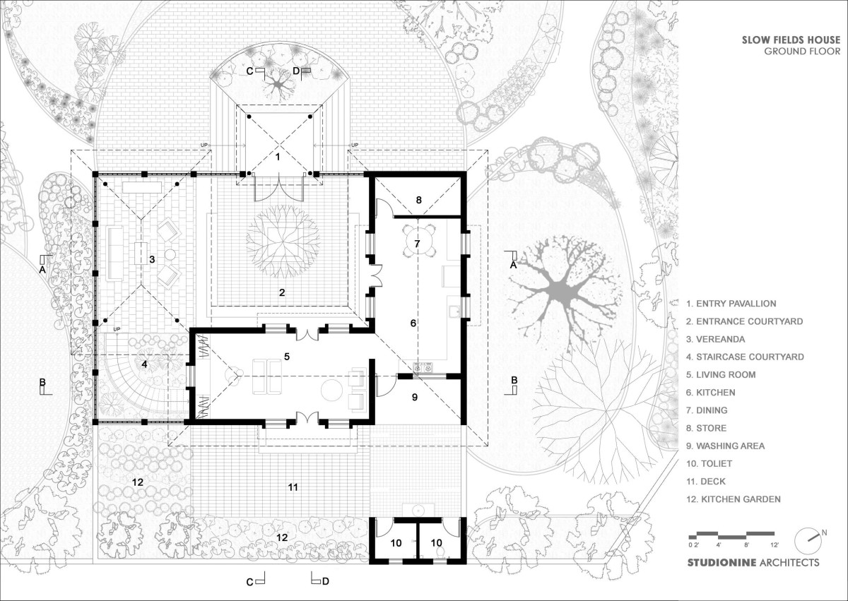 Ground Floor Plan of Slow Fields House by Studionine Architects