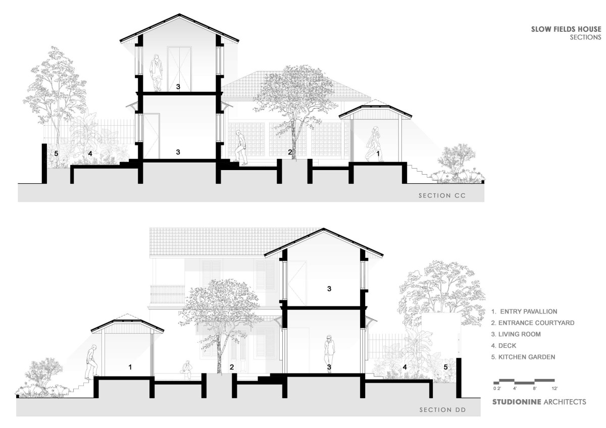 Section CC & DD of Slow Fields House by Studionine Architects