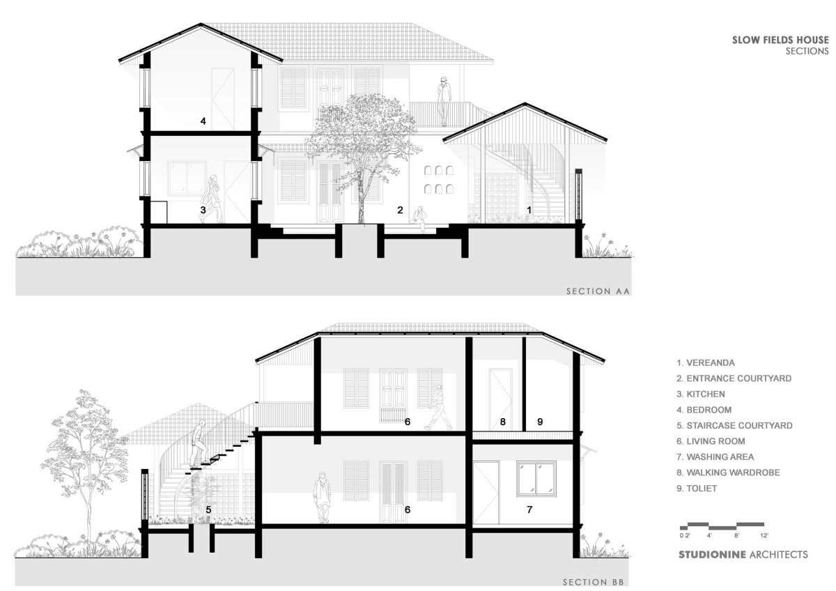 Section AA & BB of Slow Fields House by Studionine Architects