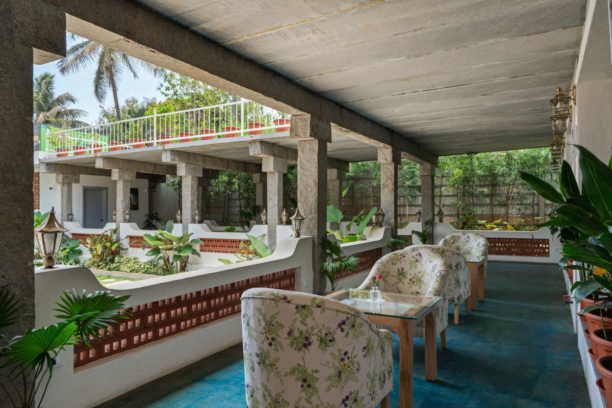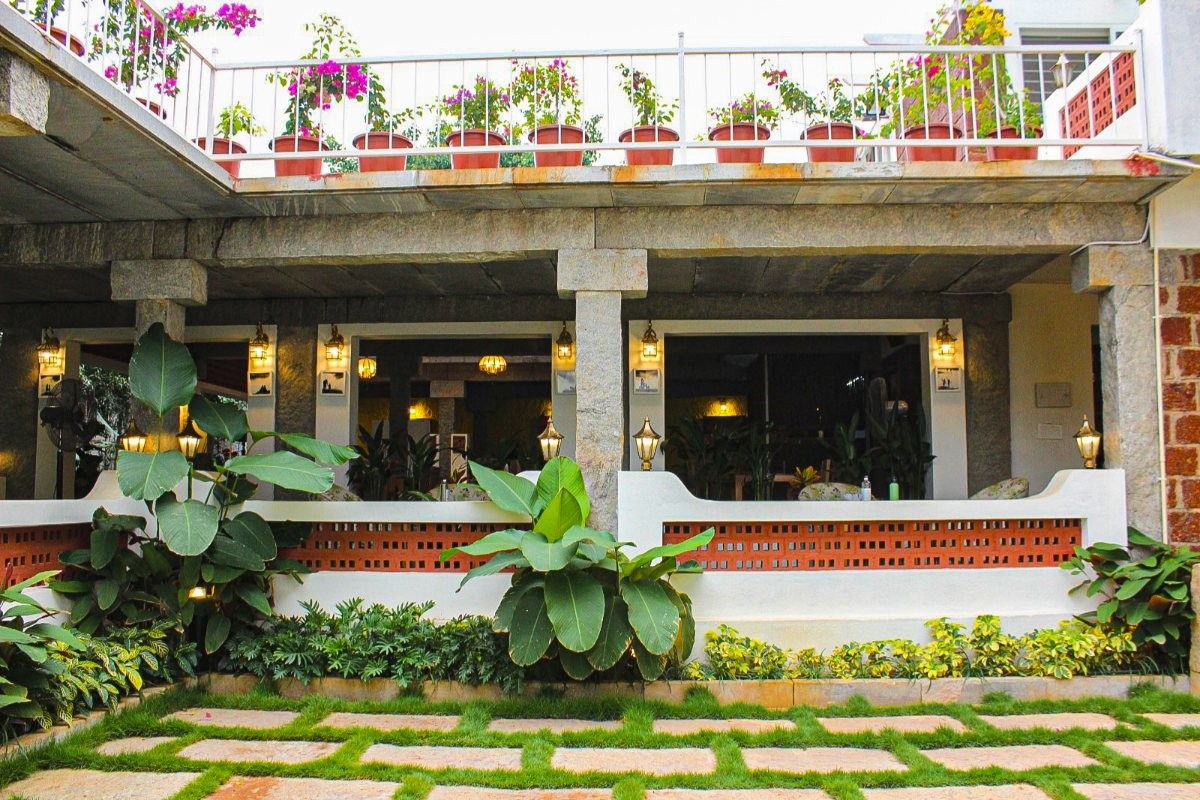 Courtyard view from dining area of Socialize Yelahanka by Aarabhi Design Build