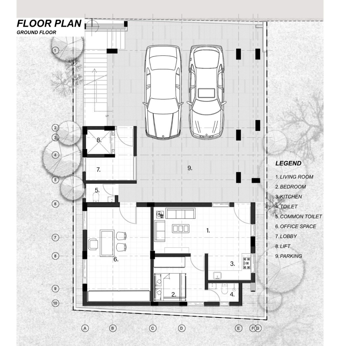 Ground Floor Plan of Srinivasa Villa by Urban Architects
