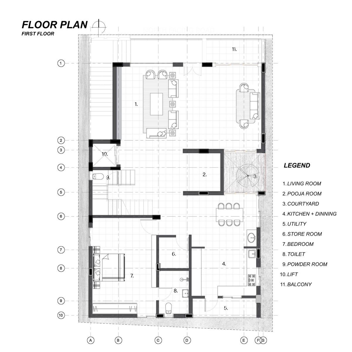 First Floor Plan of Srinivasa Villa by Urban Architects