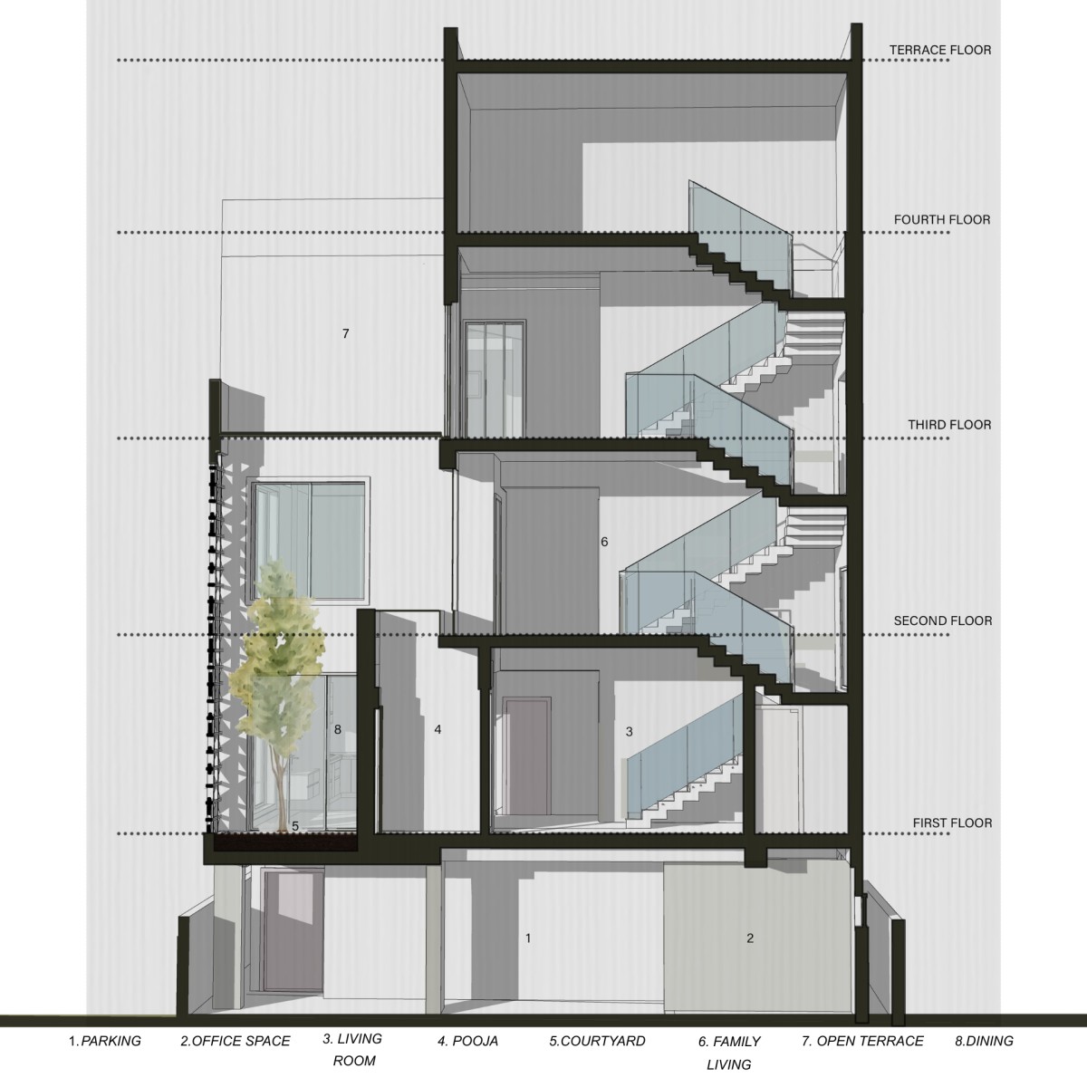 Section of Srinivasa Villa by Urban Architects