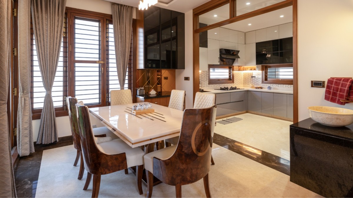Dining to Kitchen view of Srinivasa Villa by Urban Architects