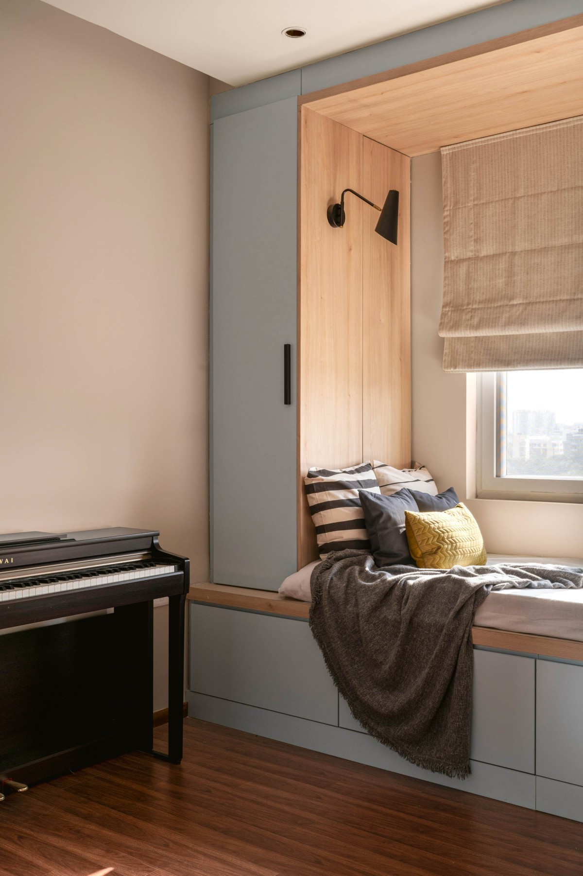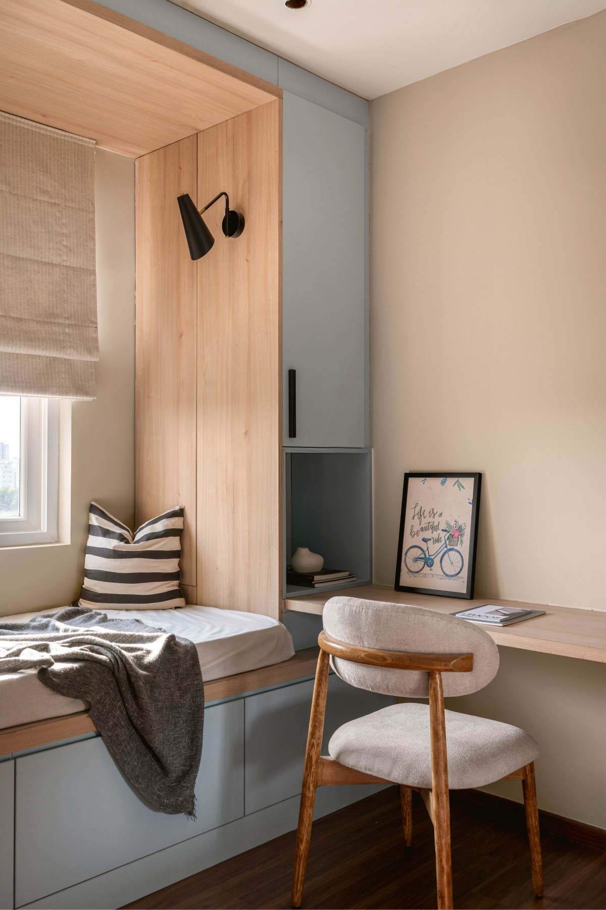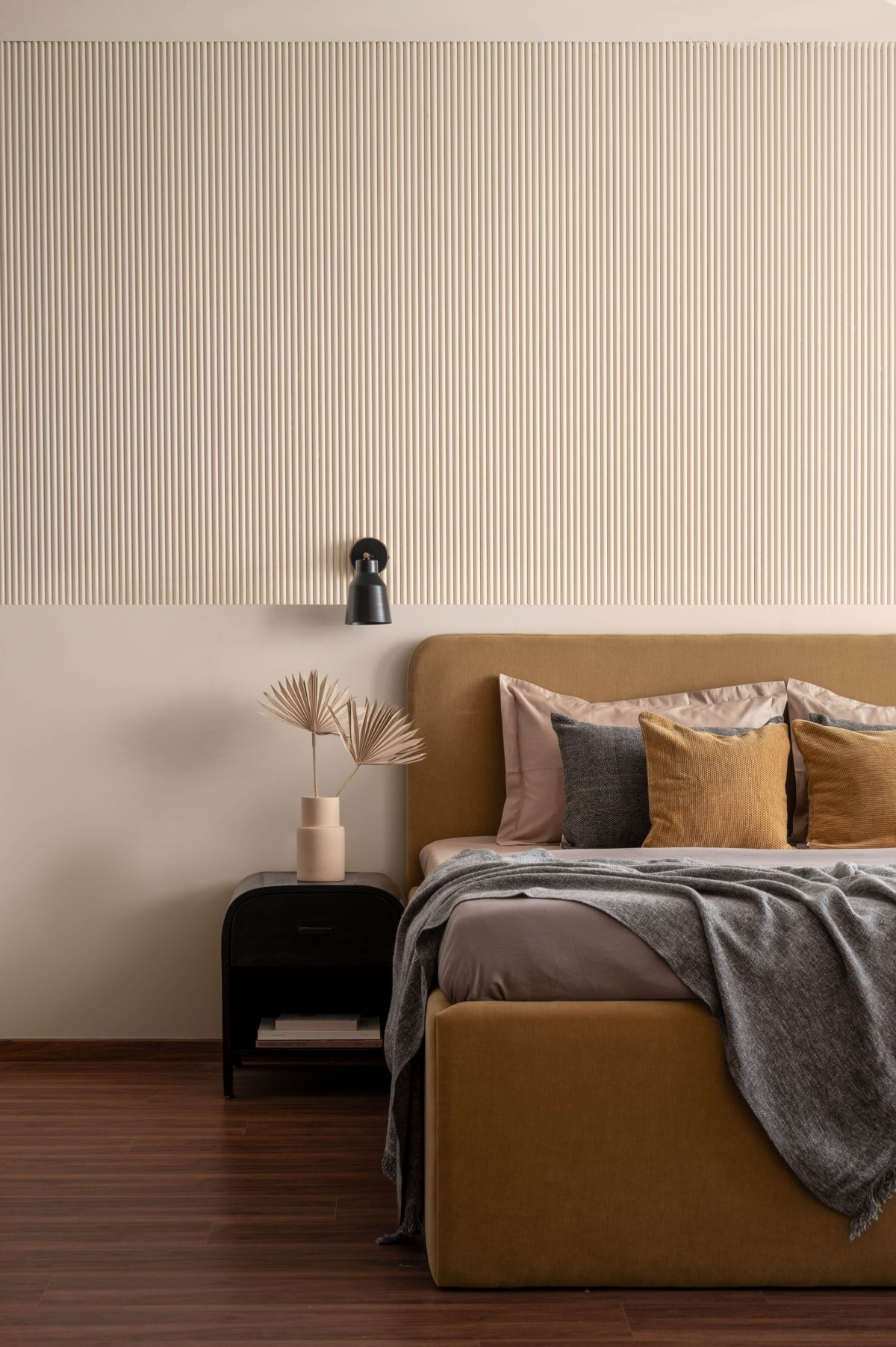 This residence was designed to mirror the calm yet celebratory nature of dusk. Our goal was to recreate that moment of stillness and awe within the interiors, infusing the space with colors and textures that feel both grounding and uplifting. The inspiration for this home was twofold. First, the calming sunset view over Saulkere Lake became an anchor for the design—a daily reminder of stillness and beauty that set the tone for the entire space.