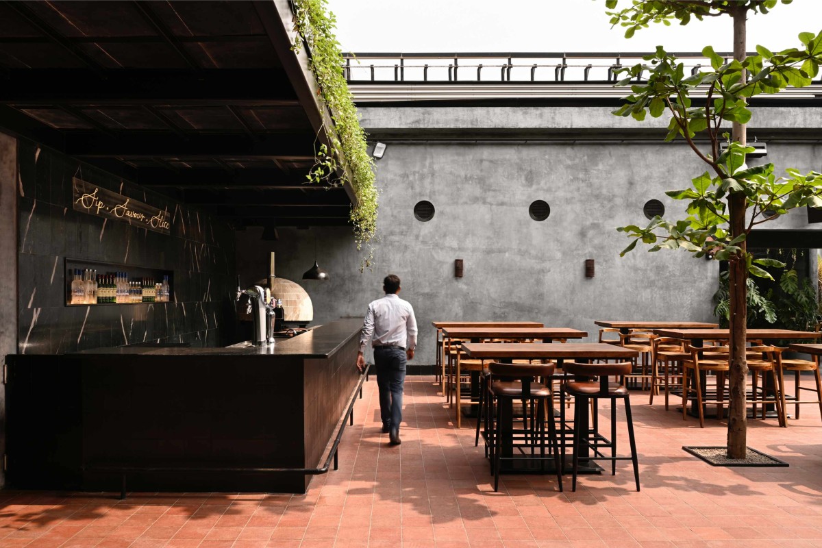 The client, a music enthusiast, envisioned a space that would echo the ethos of its predecessor while pushing boundaries. The brief called for a confined yet open-to-sky music venue, which was thoughtfully translated into a central courtyard that forms the heart of the 14,770 square-foot restaurant. This courtyard, with its meticulously planned dimensions, serves as both a performance space and a focal point around which the rest of the design unfolds. The deliberate dimensions have been tried and tested to function perfectly for music performances, and are optimised for an enchanting audio-visual and tactile experience.