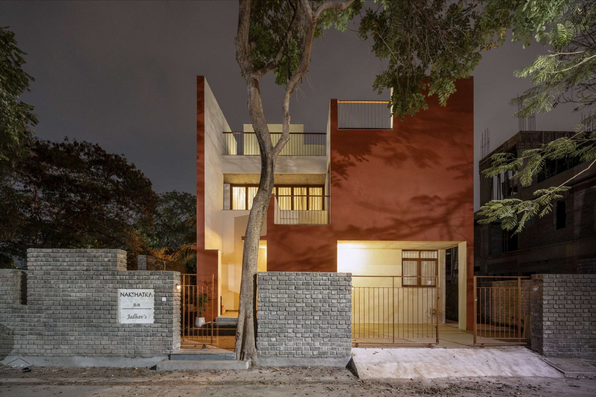 Situated in a gated community, the site offers serene, tree-lined roads free from traffic or disturbances. Within the constraints of the limited space, the studio began to weave together the functions required. An existing African tulip tree became the guiding force shaping both the function and form of the design. The architecture responds to the tree’s envelop, sculpting a form punctuated by subtle indents and bold projections in honour of the foliage. Anticipating the presence of neighbouring building in future, the plan was deliberated to bestow a sense of being confined on the outside but expansive on the inside.
