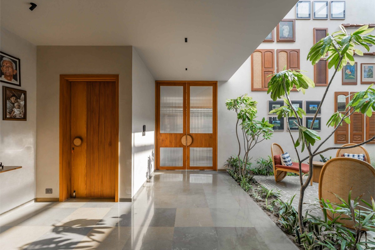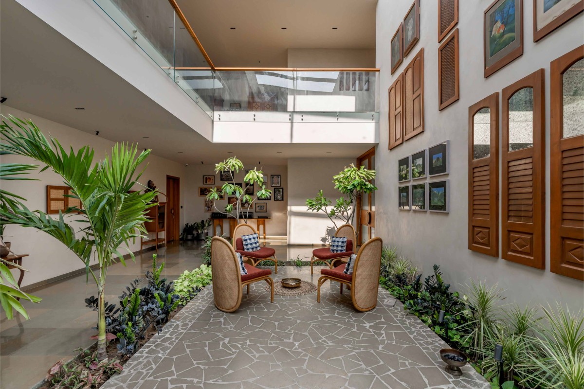 Double Height Courtyard & Pooja Mandir of The Evert House by VPA Architects