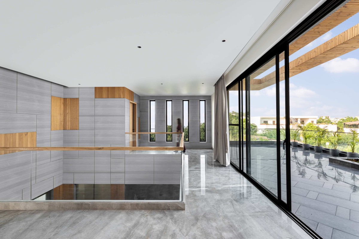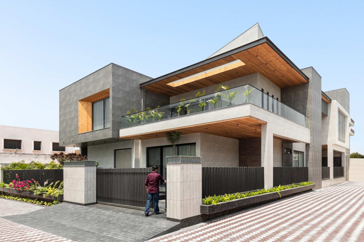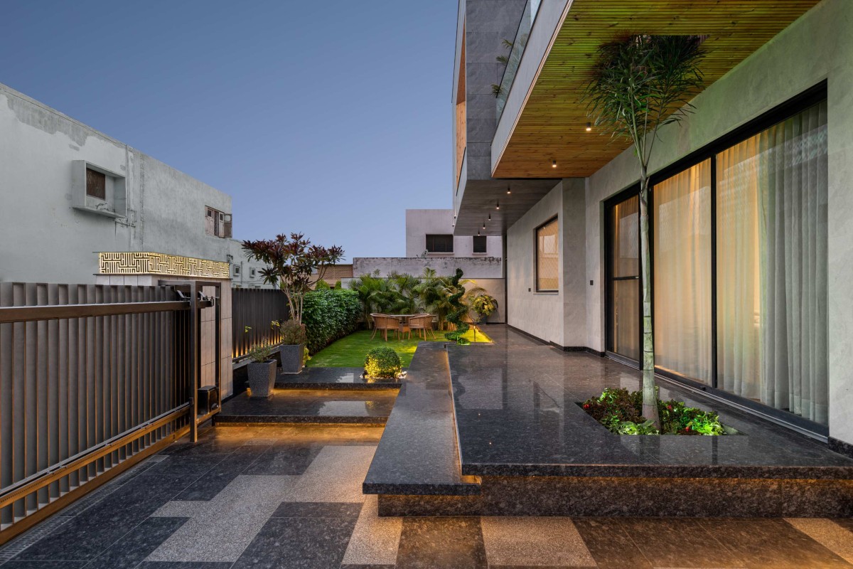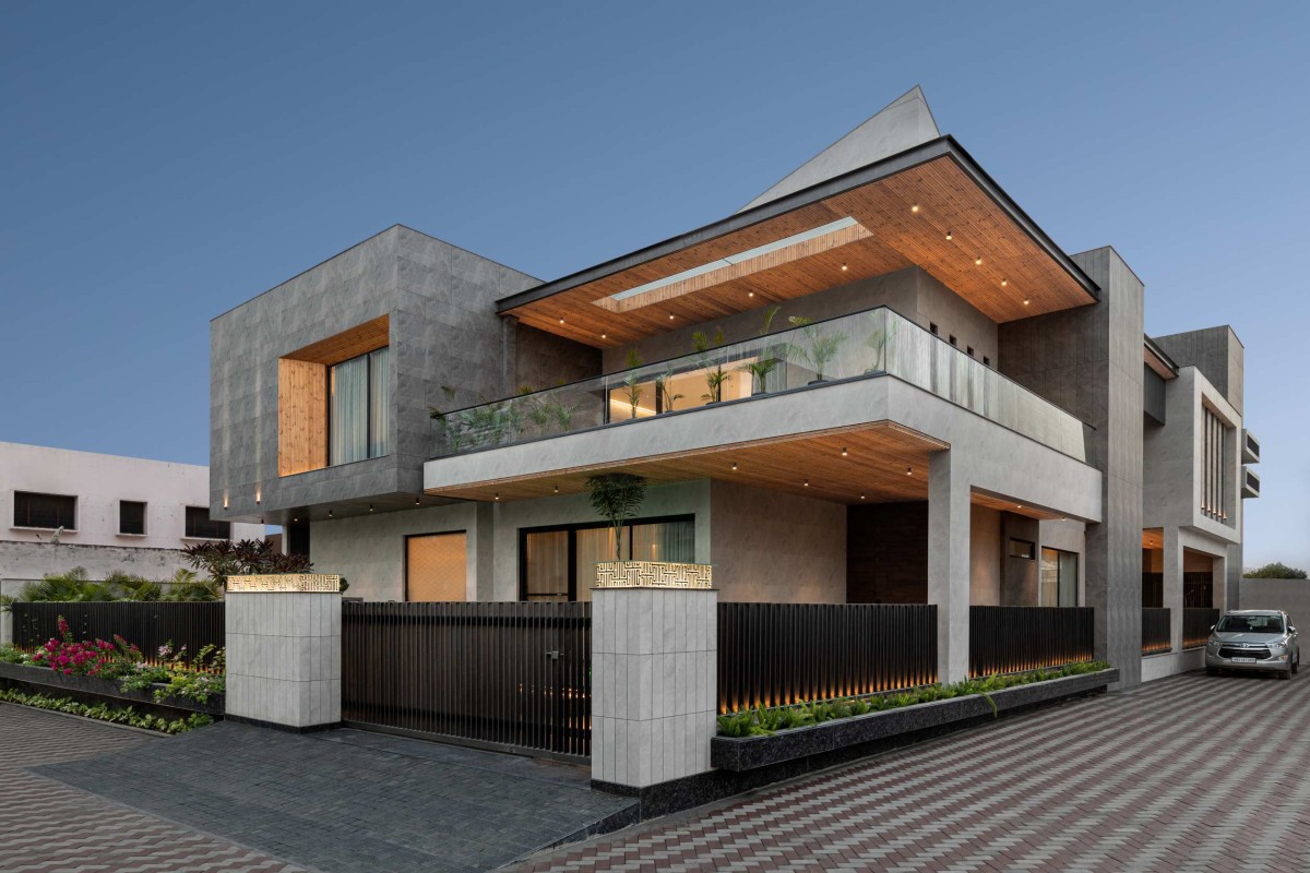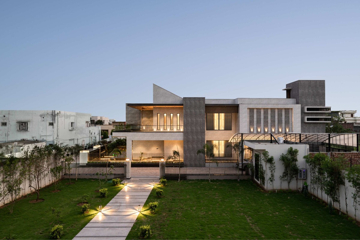 Dusk light exterior view of The Greystone Residence by Imarat Designers