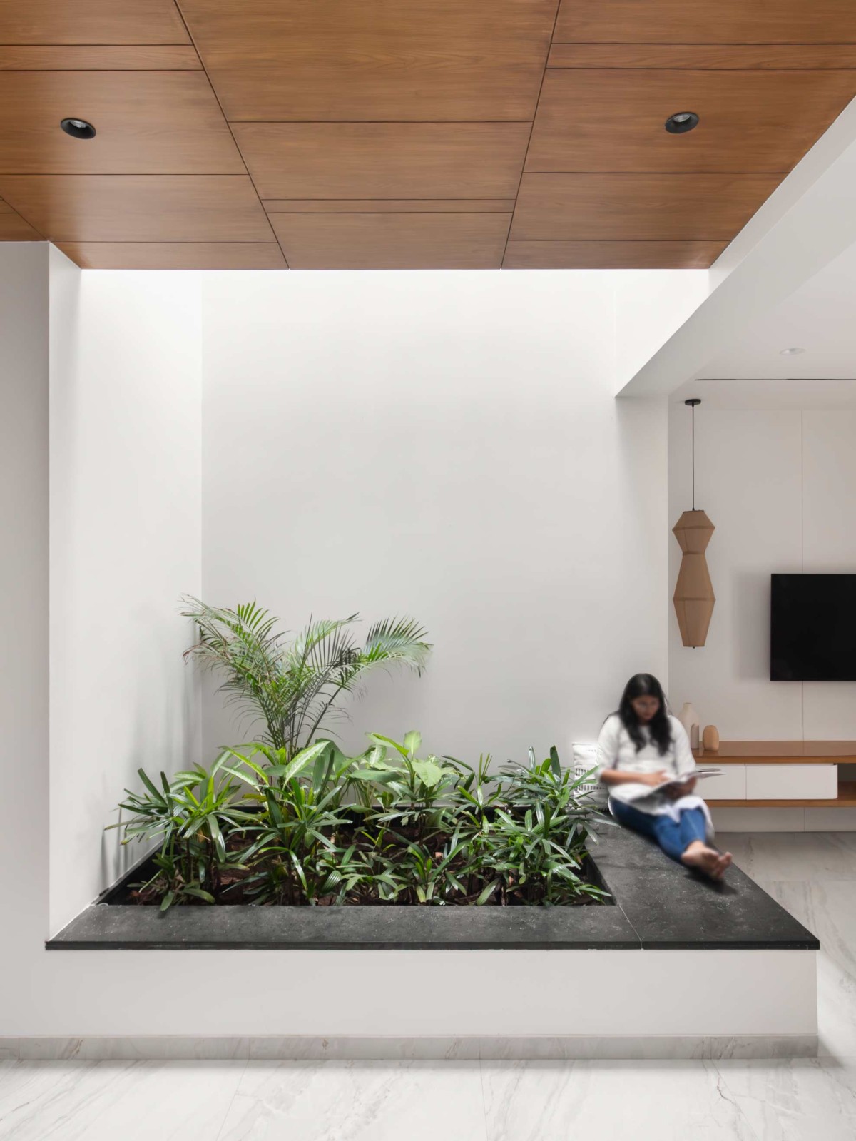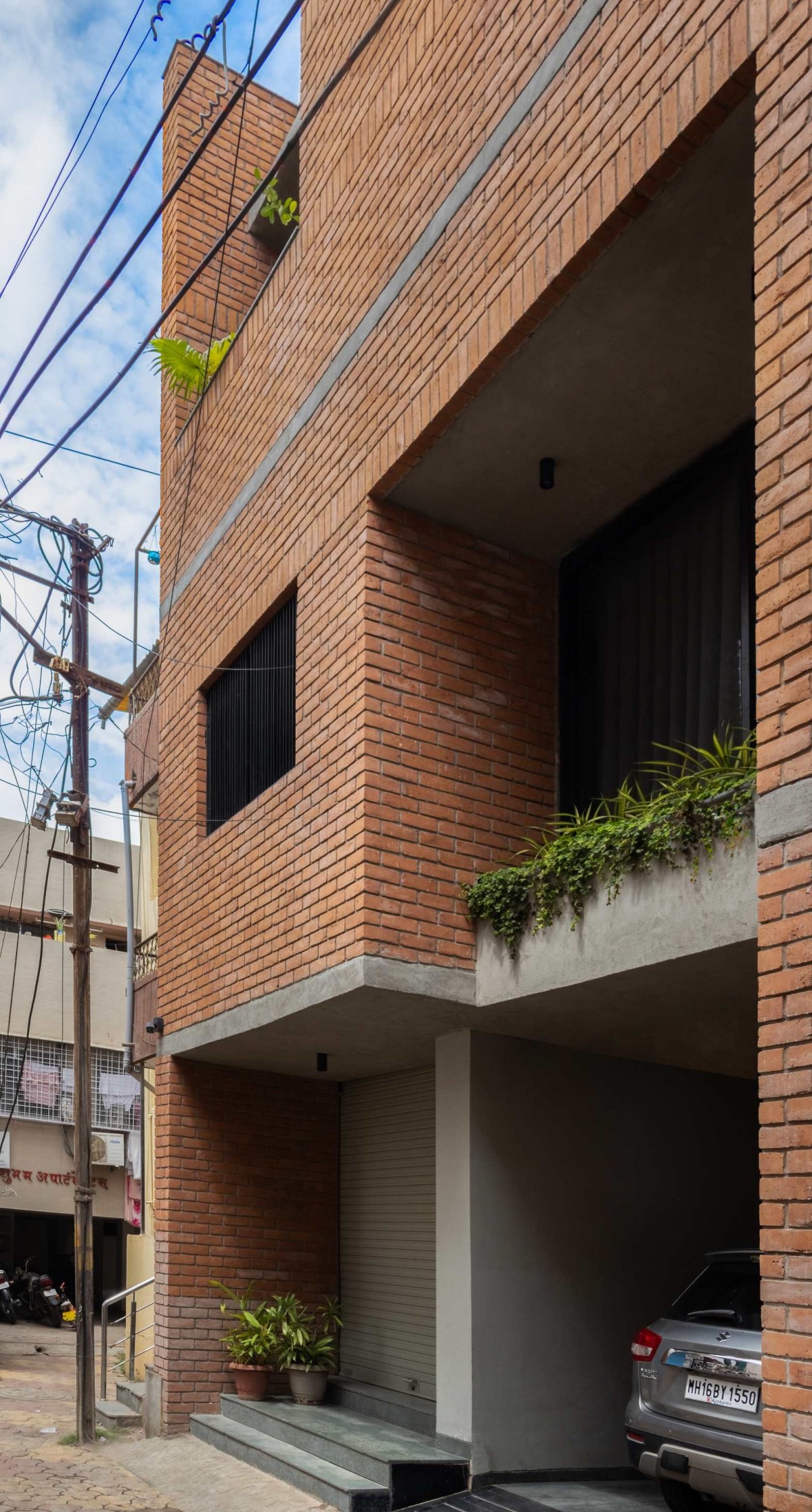 Built using local Red baked bricks, the house intentionally mirrors the city’s historic fabric while offering a contemporary living experience.