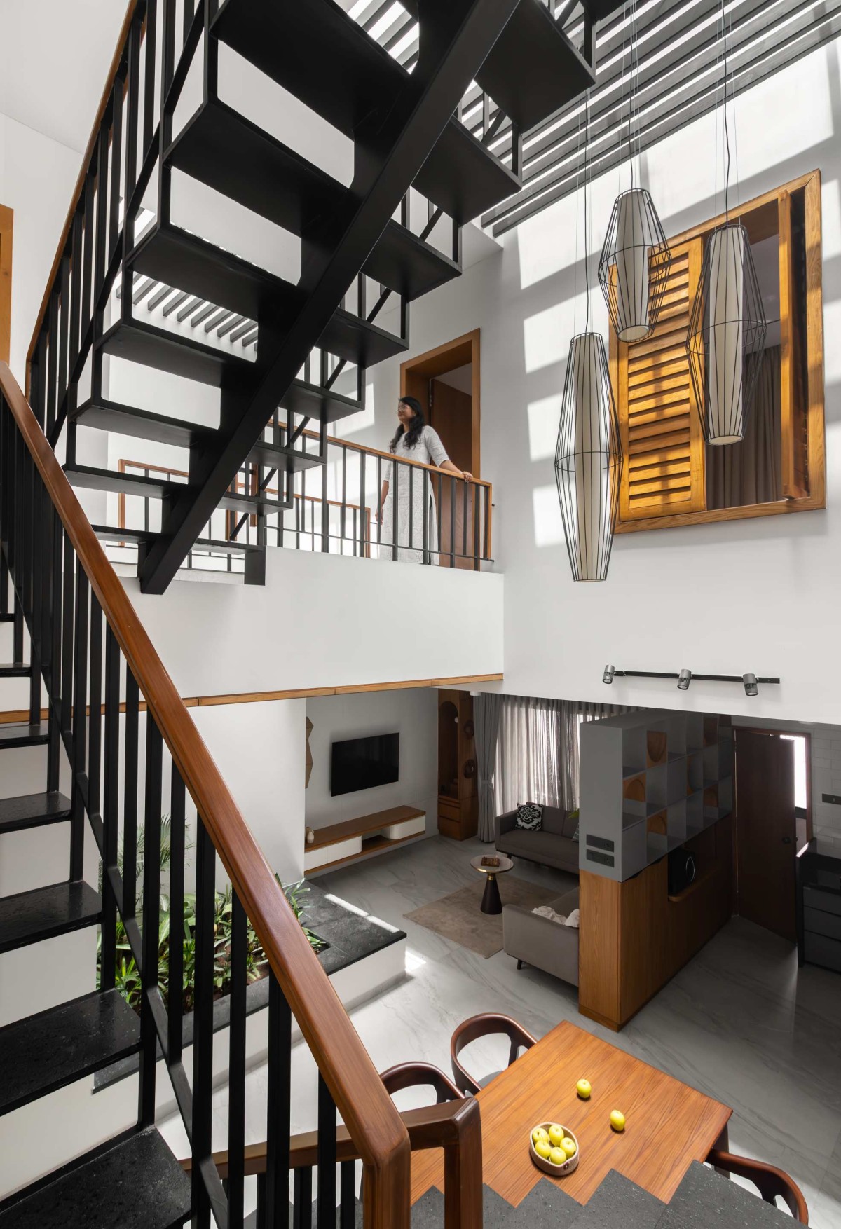 The defining design element is the central court, which serves as a crucial Vertical Connector and thermal chimney. All floors open onto this court, connecting the separated work (shop/godown) and live (residential) spaces through a central bridging volume.
