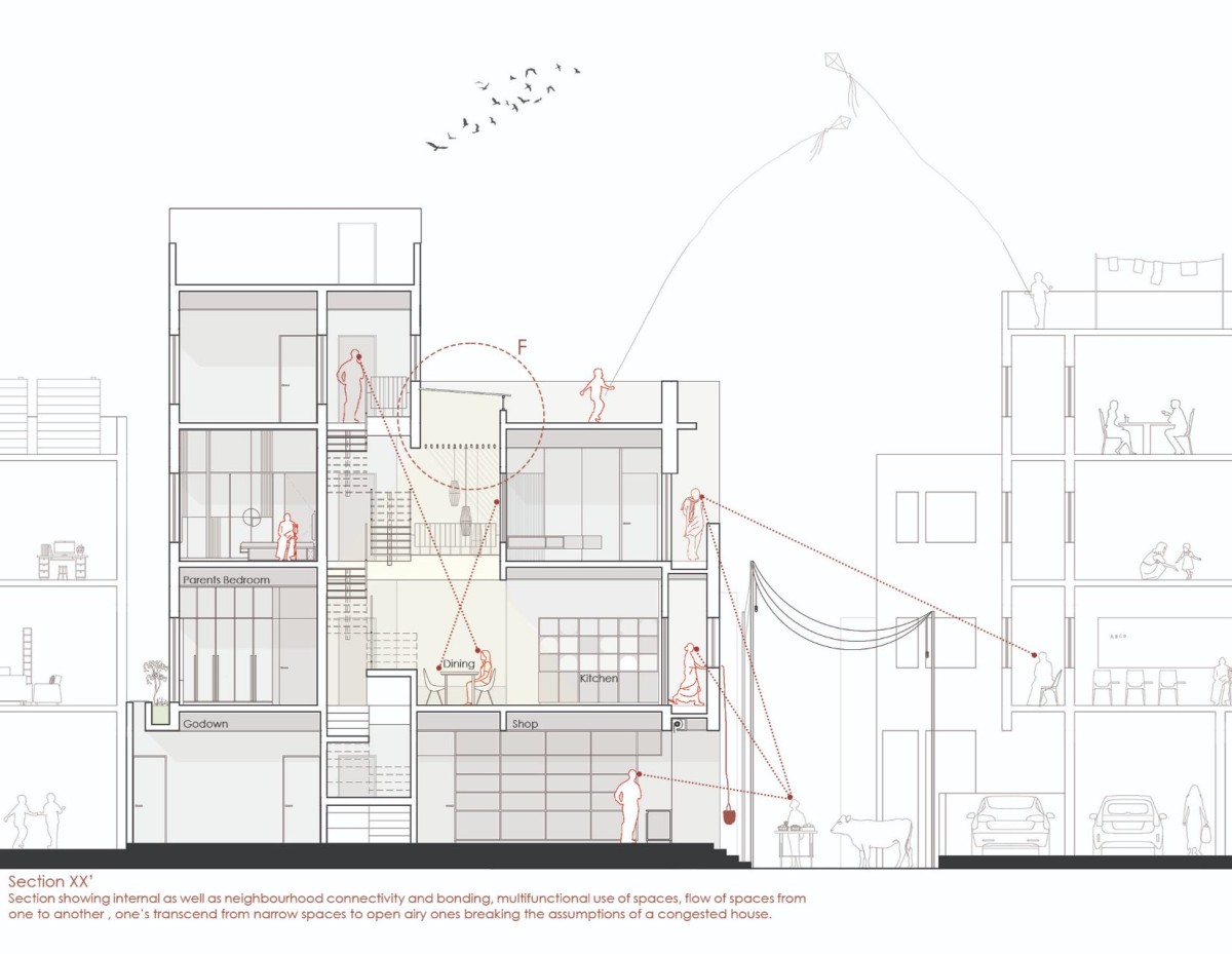 The house, on a concluding note, is not made of bricks and cement, but instead of experiences—the way spaces are to be used, local activities, and neighborhood bonding. Living in a crowded city doesn’t mean that we have to shut our doors and disconnect from the outsides, instead we need to flexibly bring generosity in design and help the building breathe and communicate between people, nature, and society.