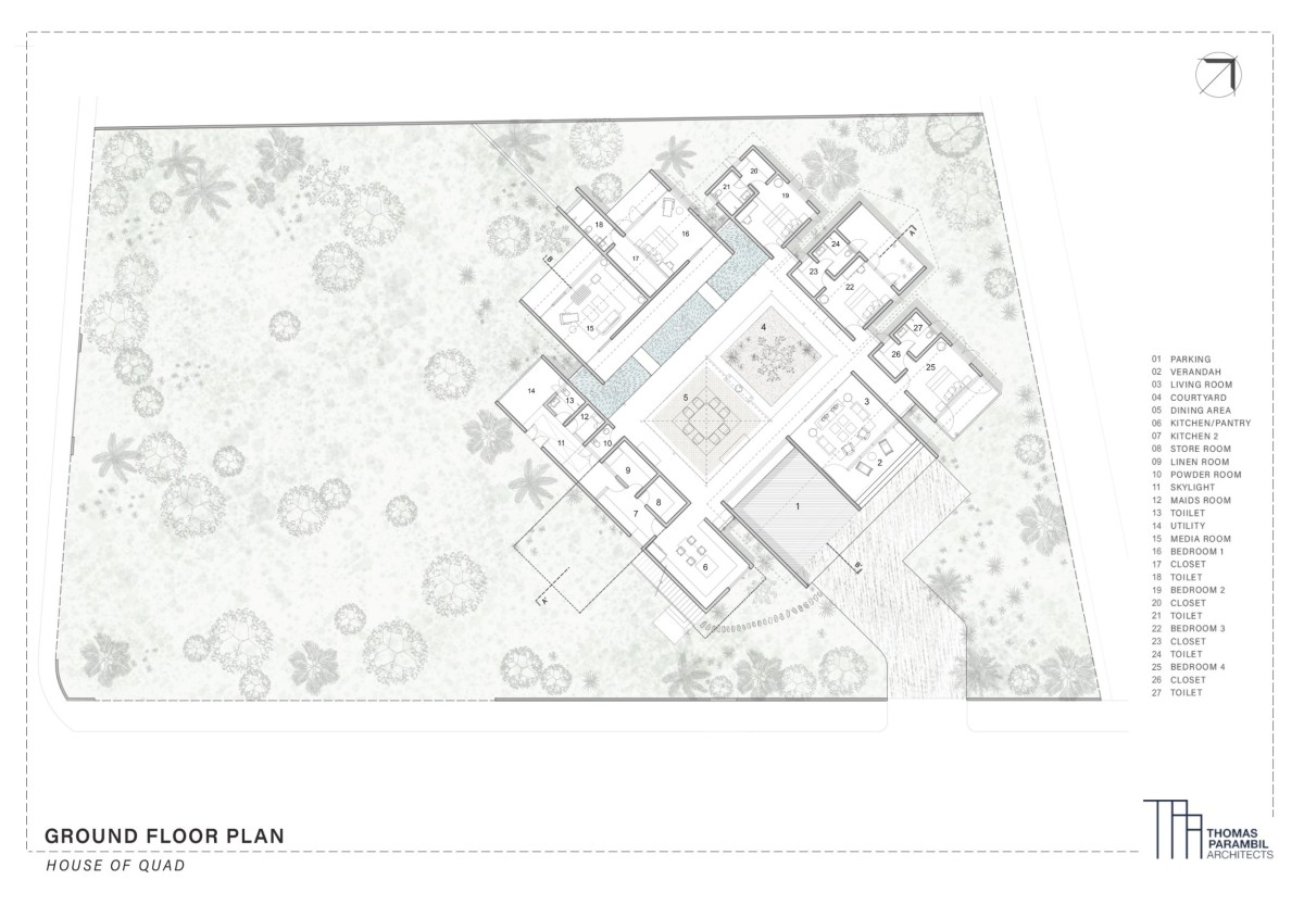 Ground Floor Plan of The House of Quad by Thomas Parambil Architects
