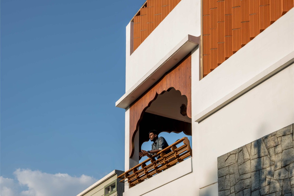Detailed shot of facade of The Kudil by Masonry of Architects