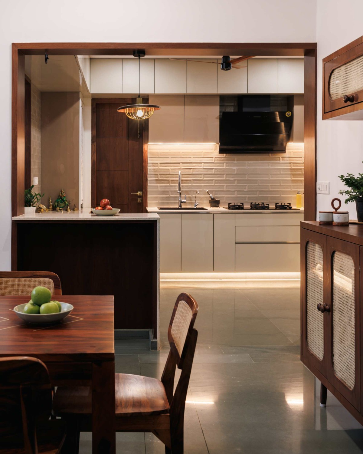 Dining to Pooja Mandir view of The Living Tapestry by Studio UrbanPoetics